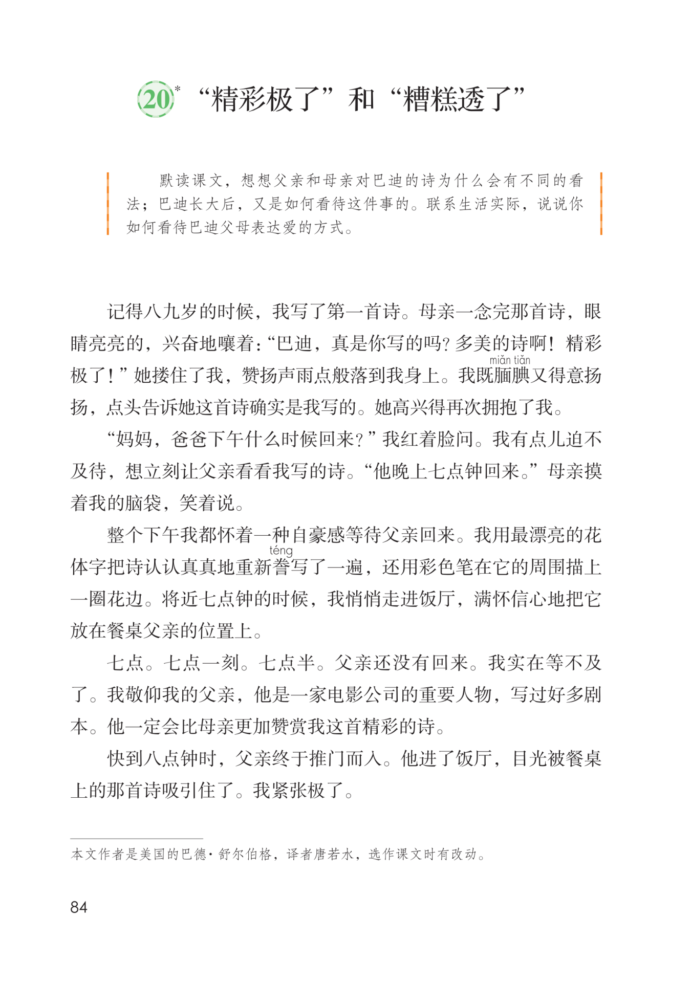 首诗,妈妈对这首诗的评价是“精彩极了”,而爸爸的评价却是“糟糕透了”。