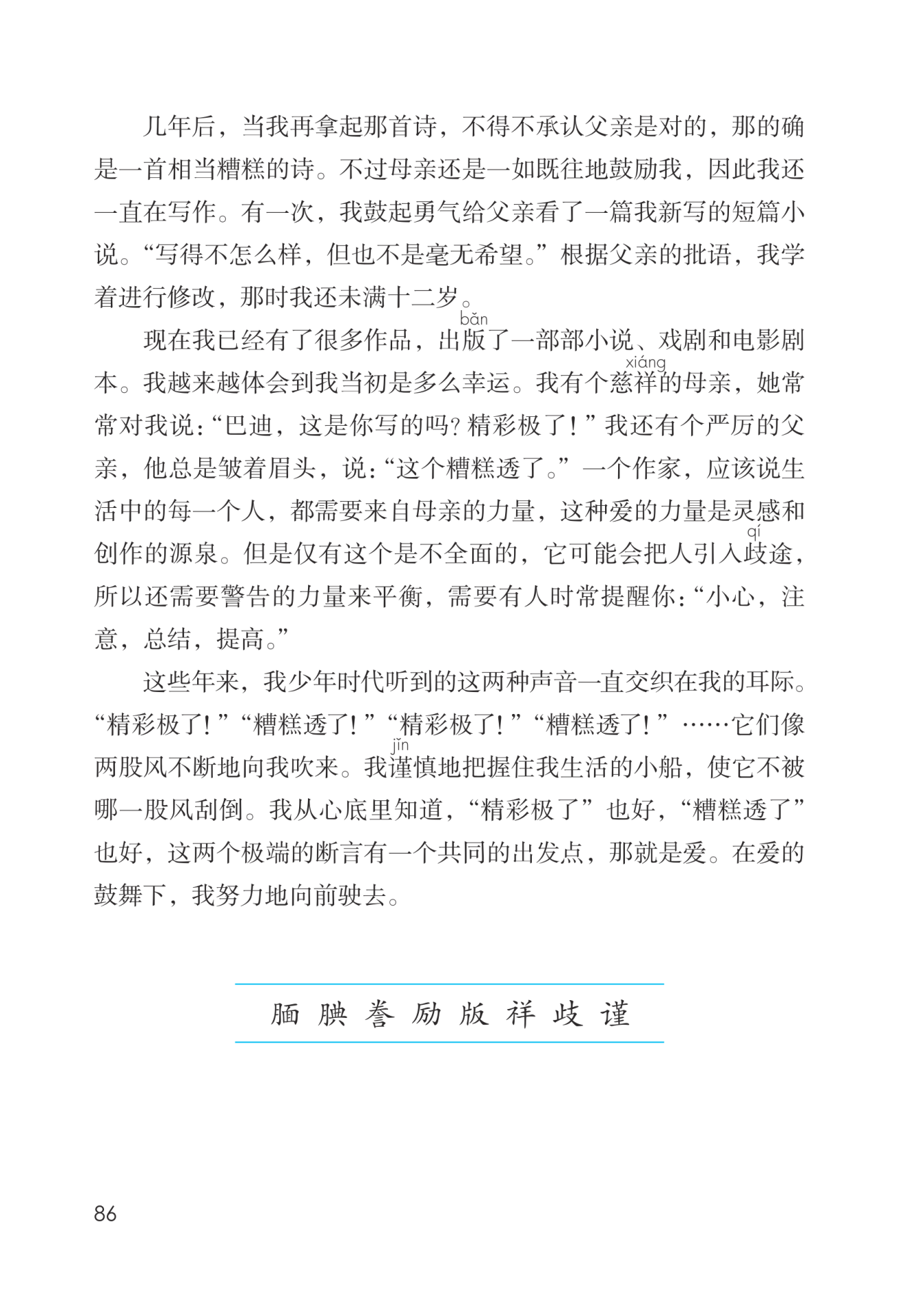 “我”在生活道路上的认识:一个人在成长的过程中既需要鼓励,又需要警告。