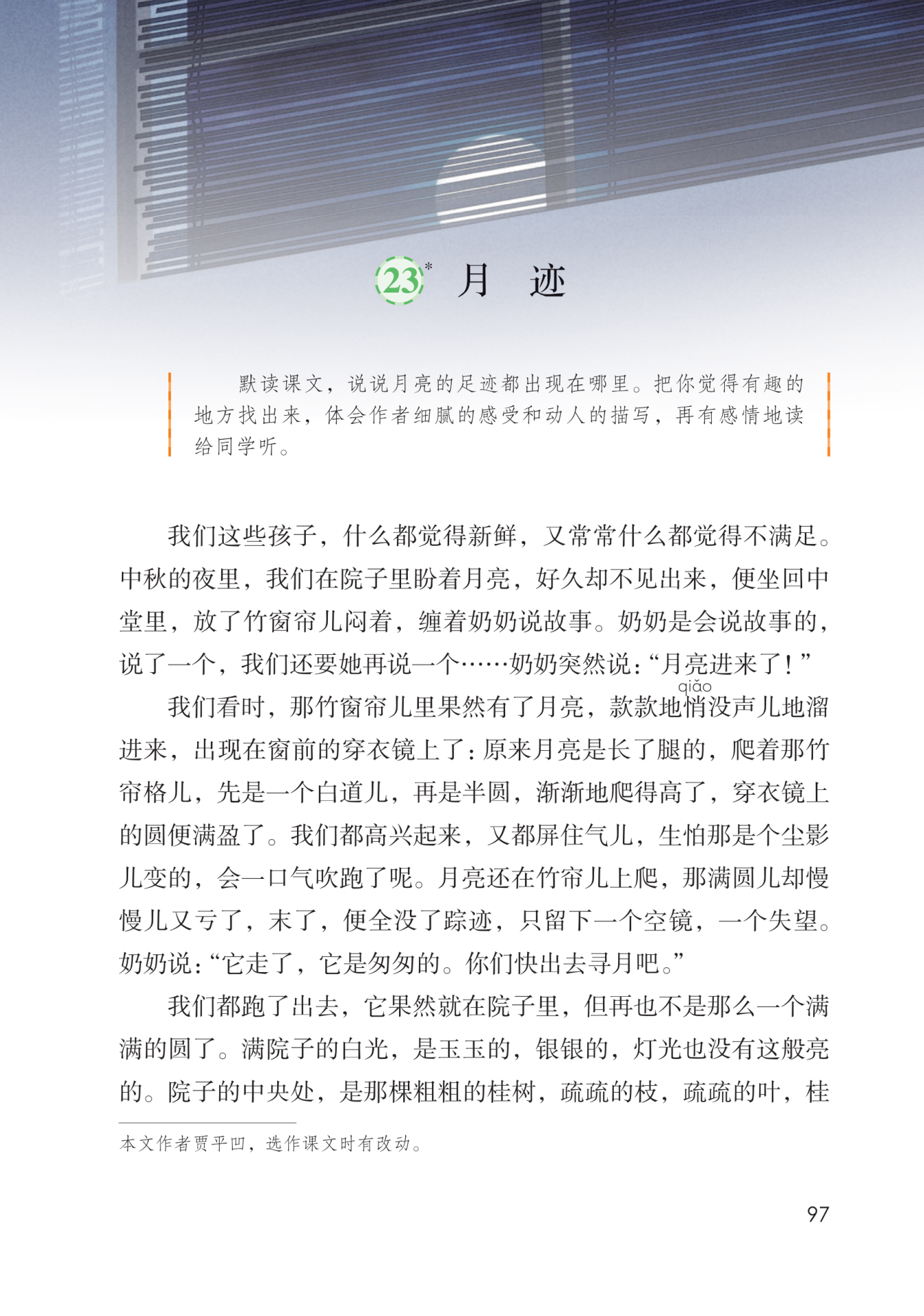 一个“寻”字,引出了下文。奶奶的兴致其实不亚于孩子们,更可贵的是,奶奶注重引导,鼓励孩子们去寻月亮,满足他们的求知欲。