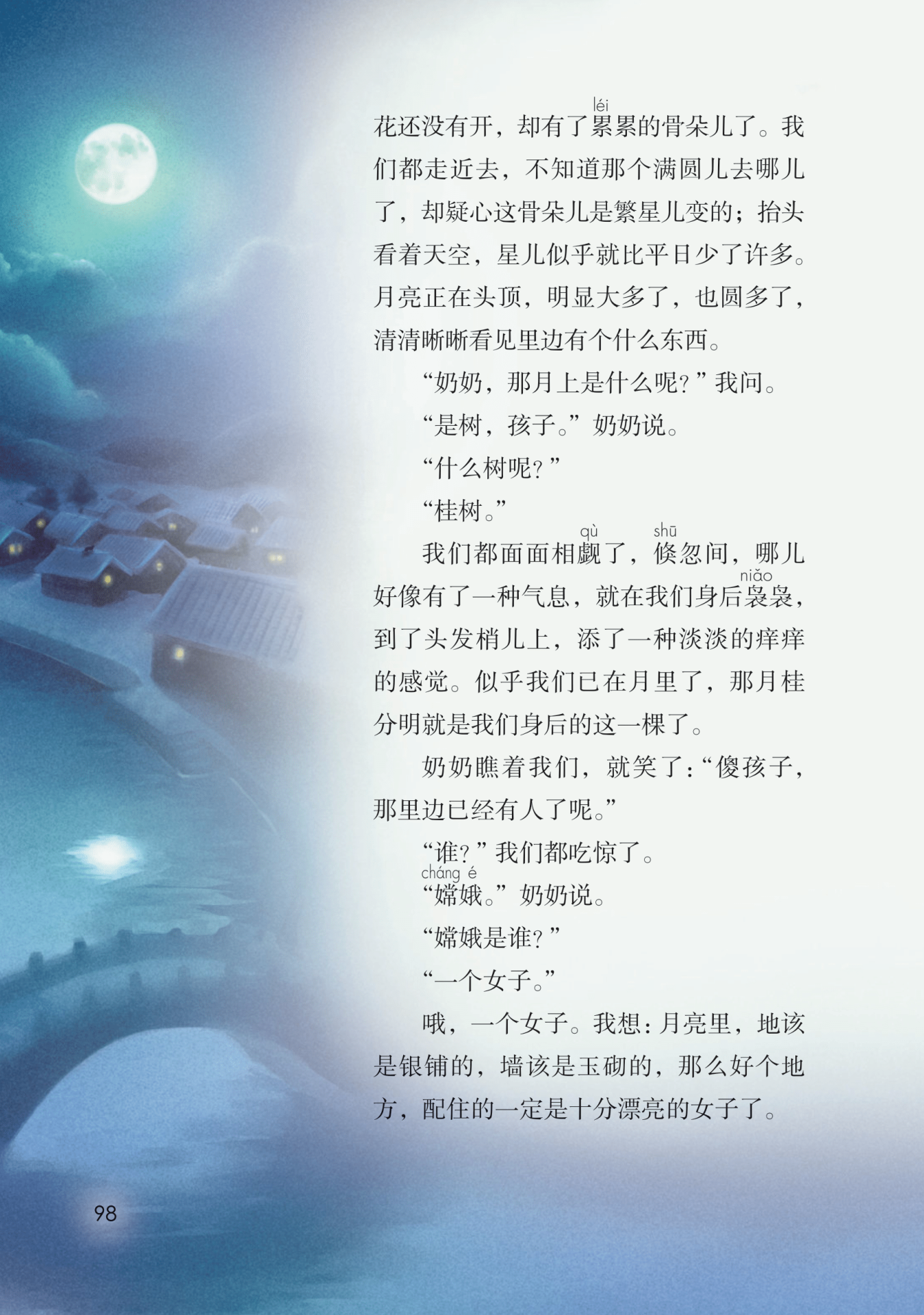 写出了孩子锲而不舍、不停追问的强烈好奇心,为后文到处找月亮埋下伏笔。