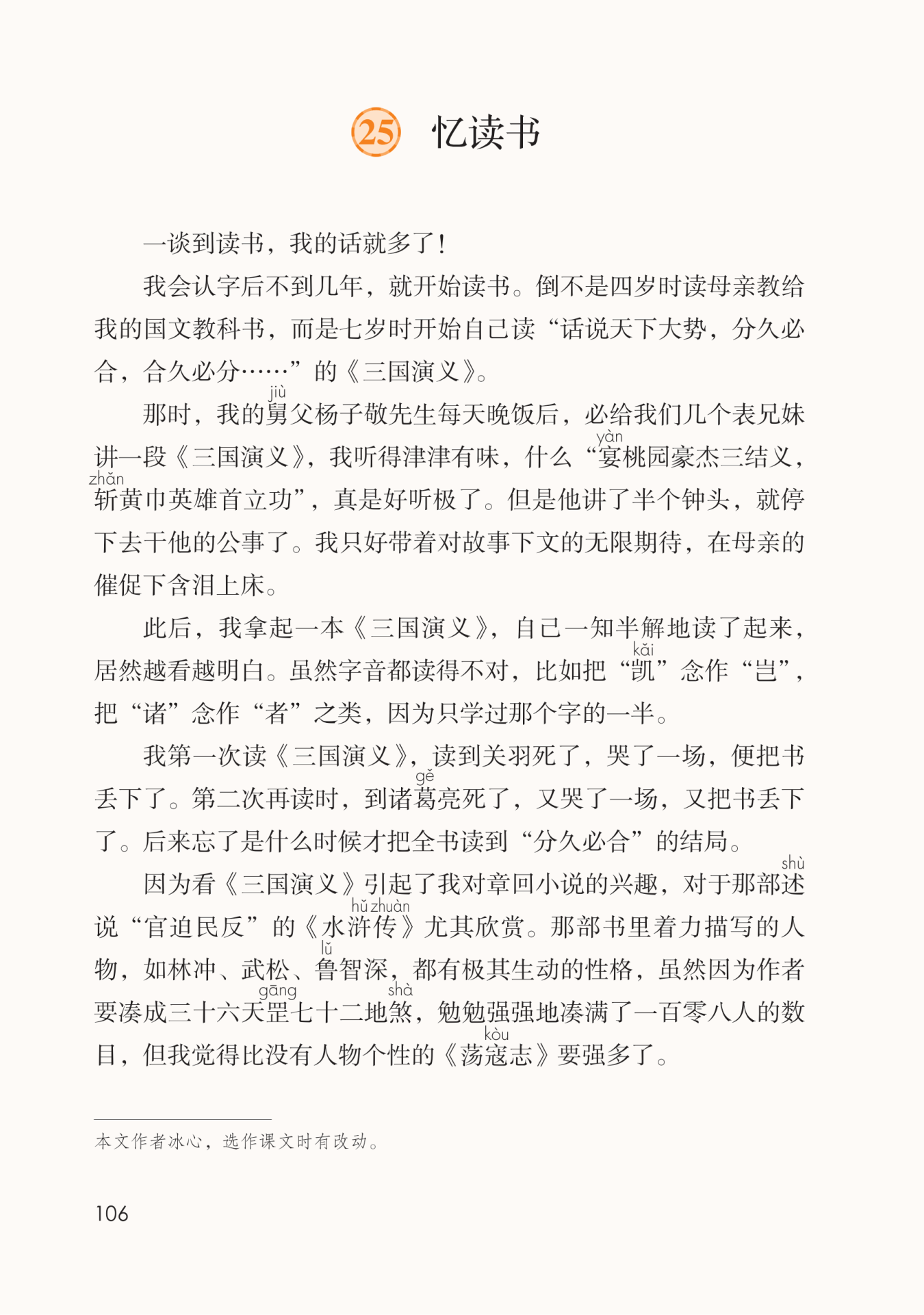 中心思想:本文作者冰心回忆了幼年、少年时读书的经历,总结了多