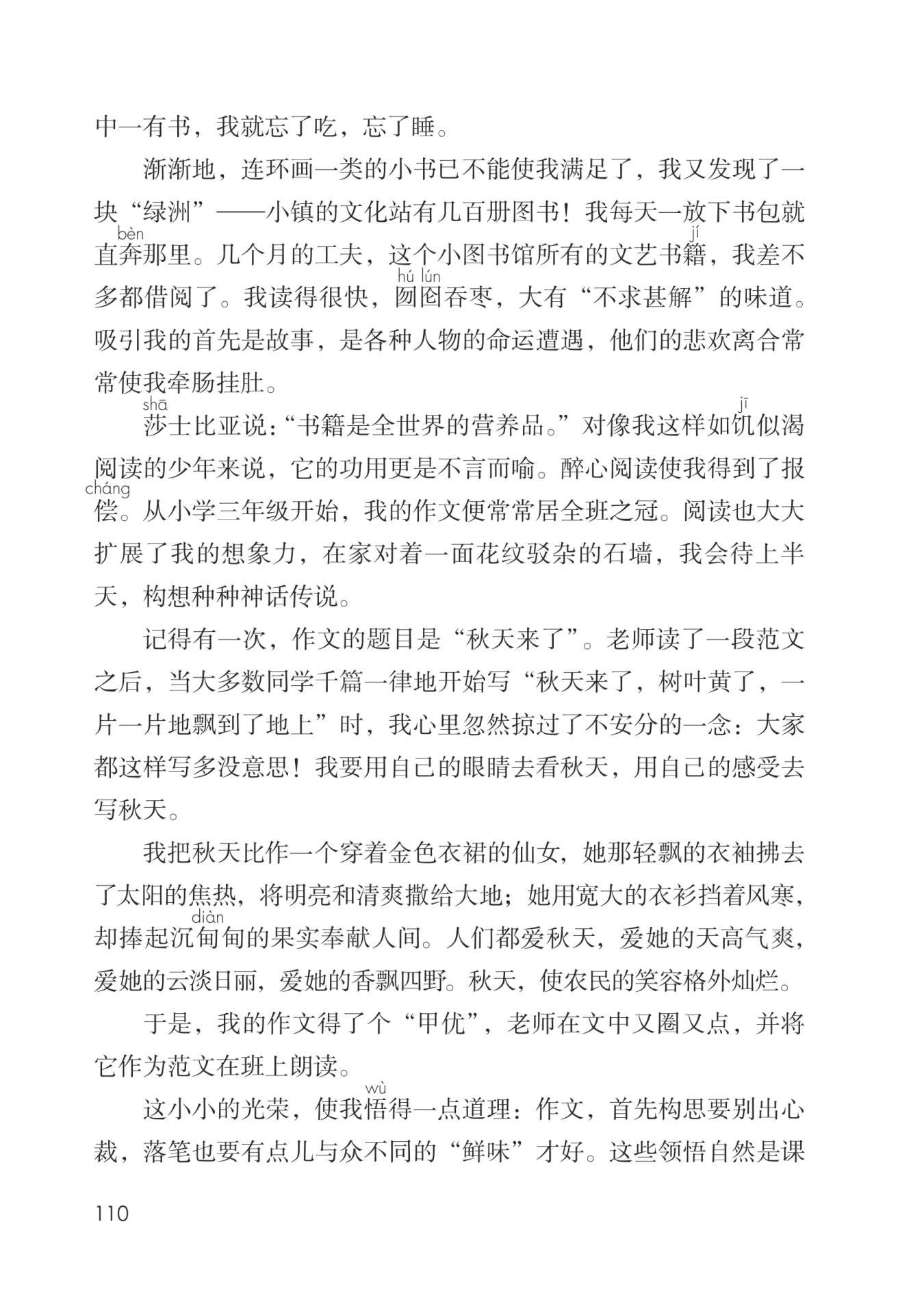 作者没有仿照范文千篇一律地写,而是写出了自己对秋天的独特感受和真情实感。