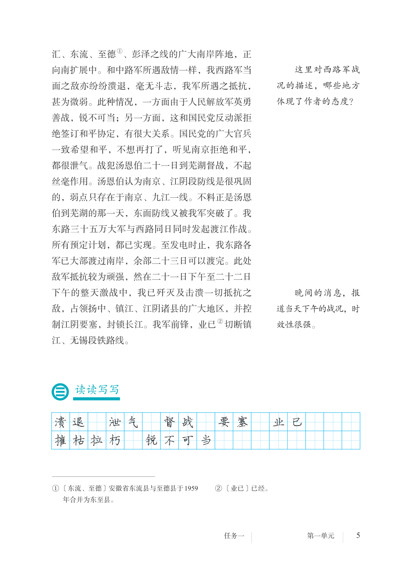 议论。客观全面地分析了敌军毫无斗志的原因:我军英勇善战,锐不可当,敌军被自己玩弄的“和平”阴谋瓦解了斗志。