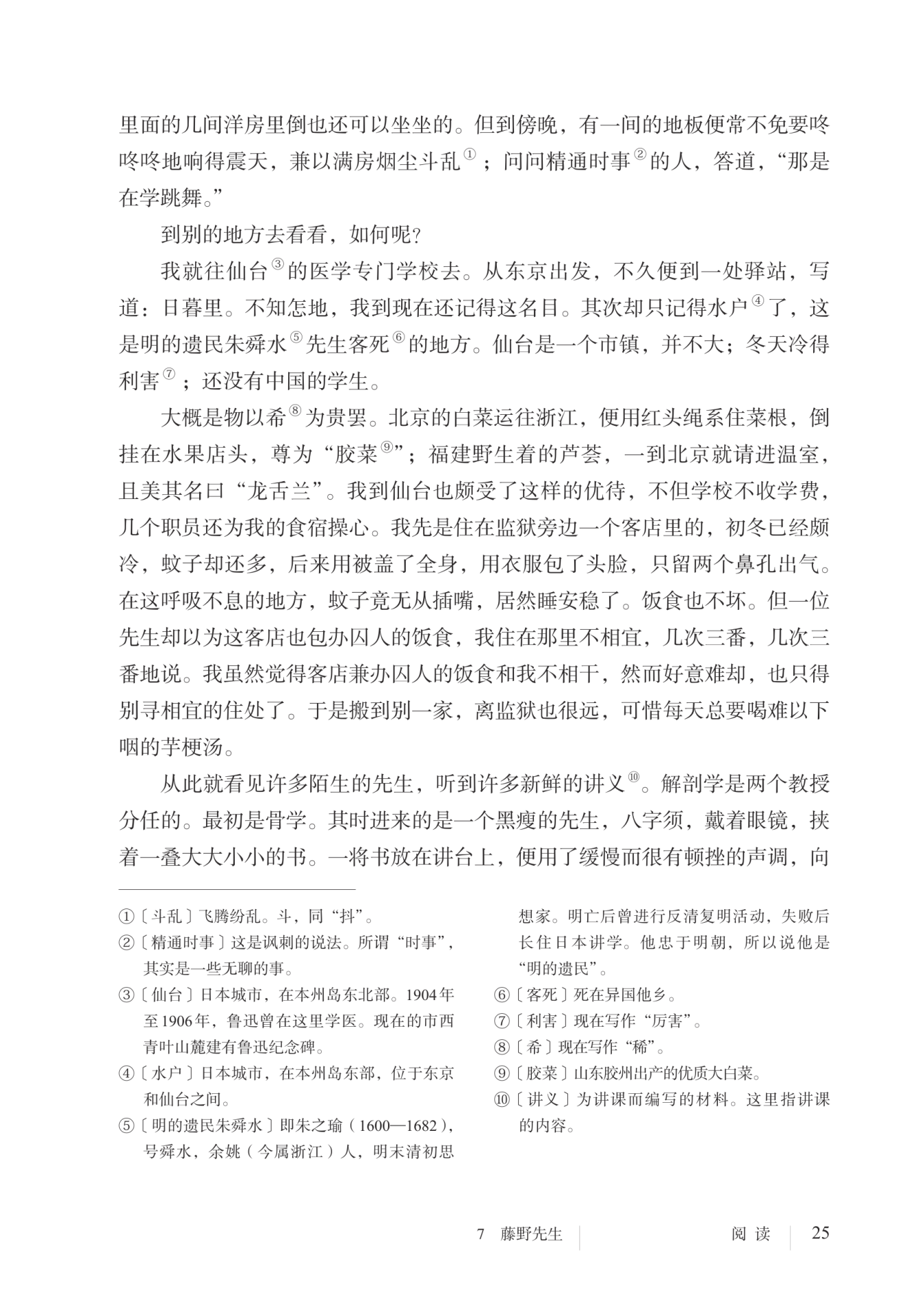 承上启下,照应课文首句;由作者在东京的生活自然过渡到去仙台求学,为下文写与藤野先生的相识埋下伏笔。