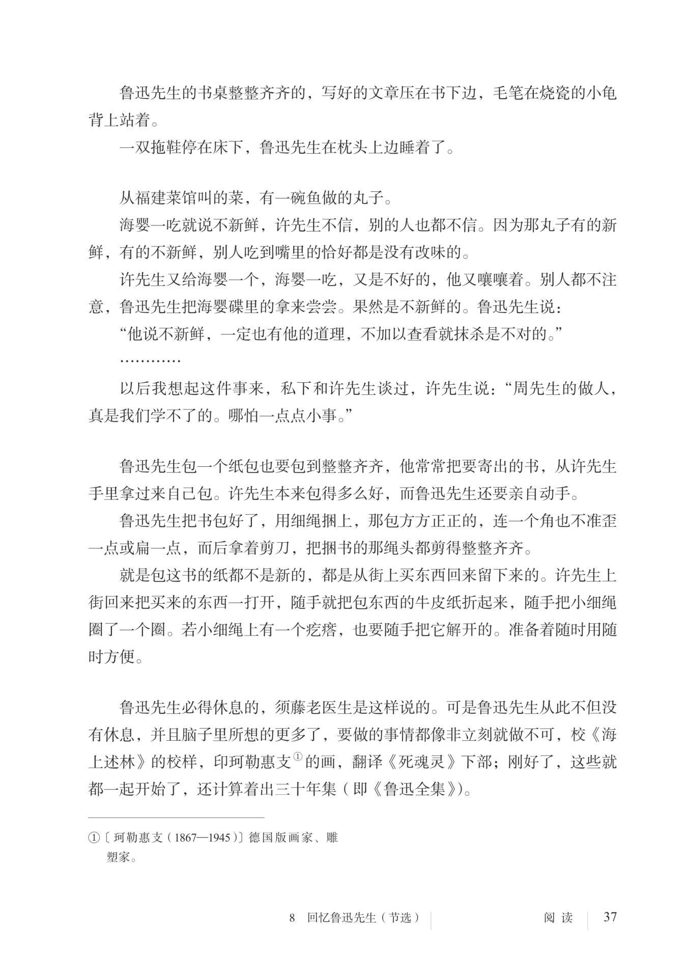 许先生的话看似轻描淡写,实则意味深长,是画龙点睛之笔,突出鲁迅先生细致、求真、求实的品质。