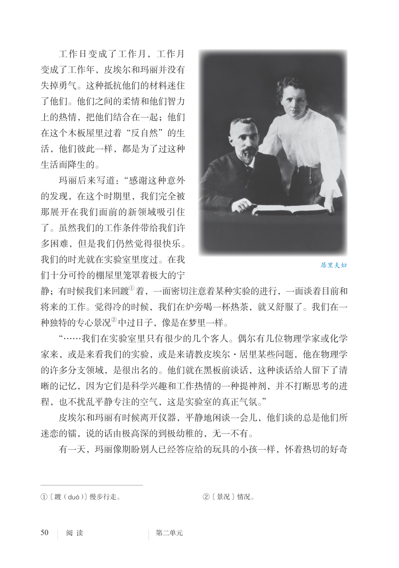 表现出居里夫妇醉心于科学研究,