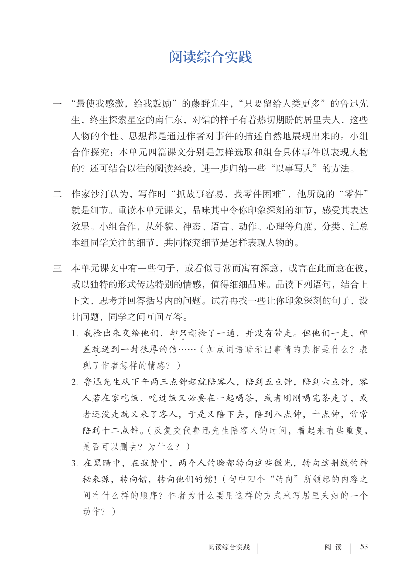 3.组合事件,多角度表现人物;