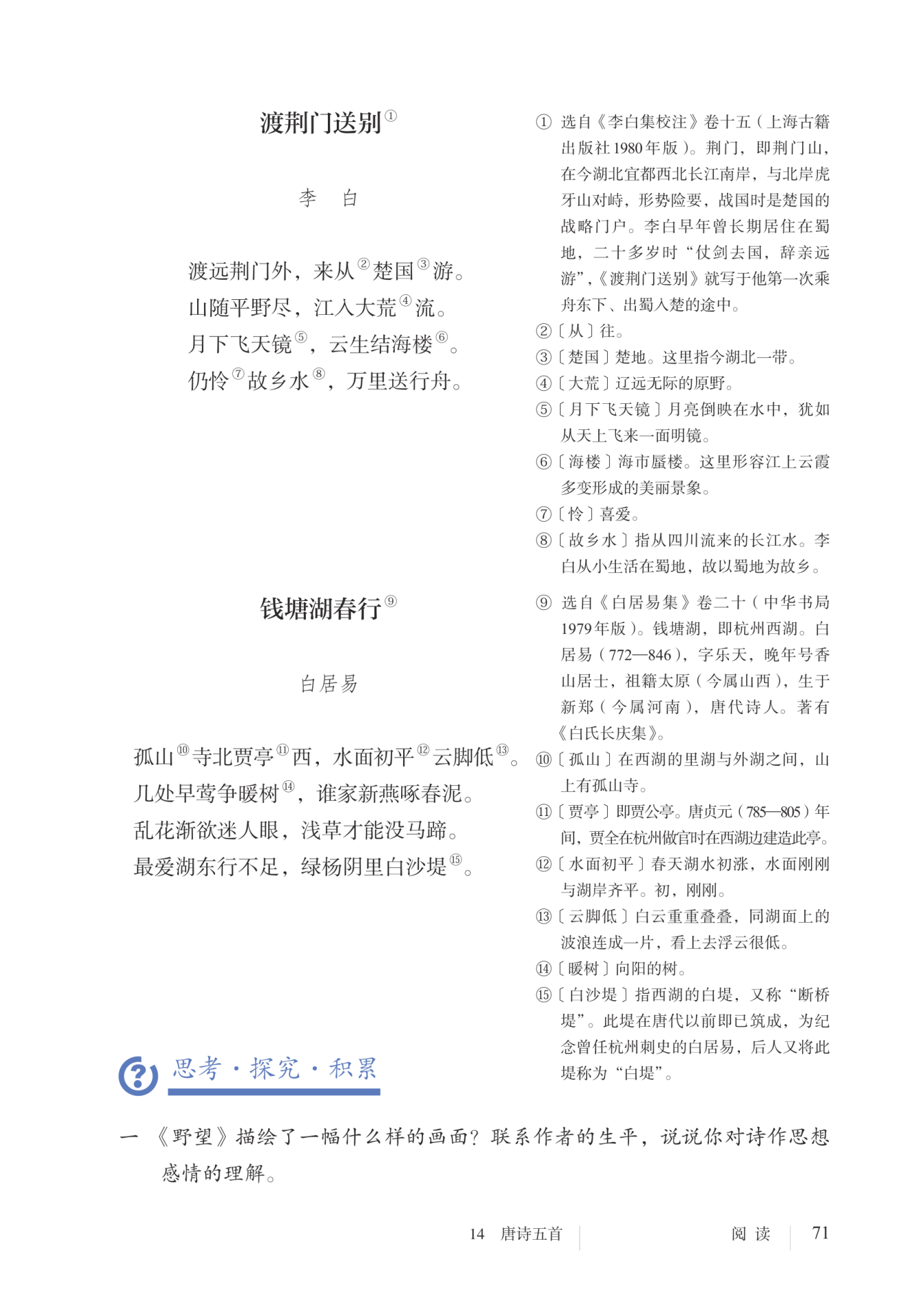 本诗对出蜀至荆门沿途所见景物进行描写,展现了一幅由高山、大江、原野、明月、彩云