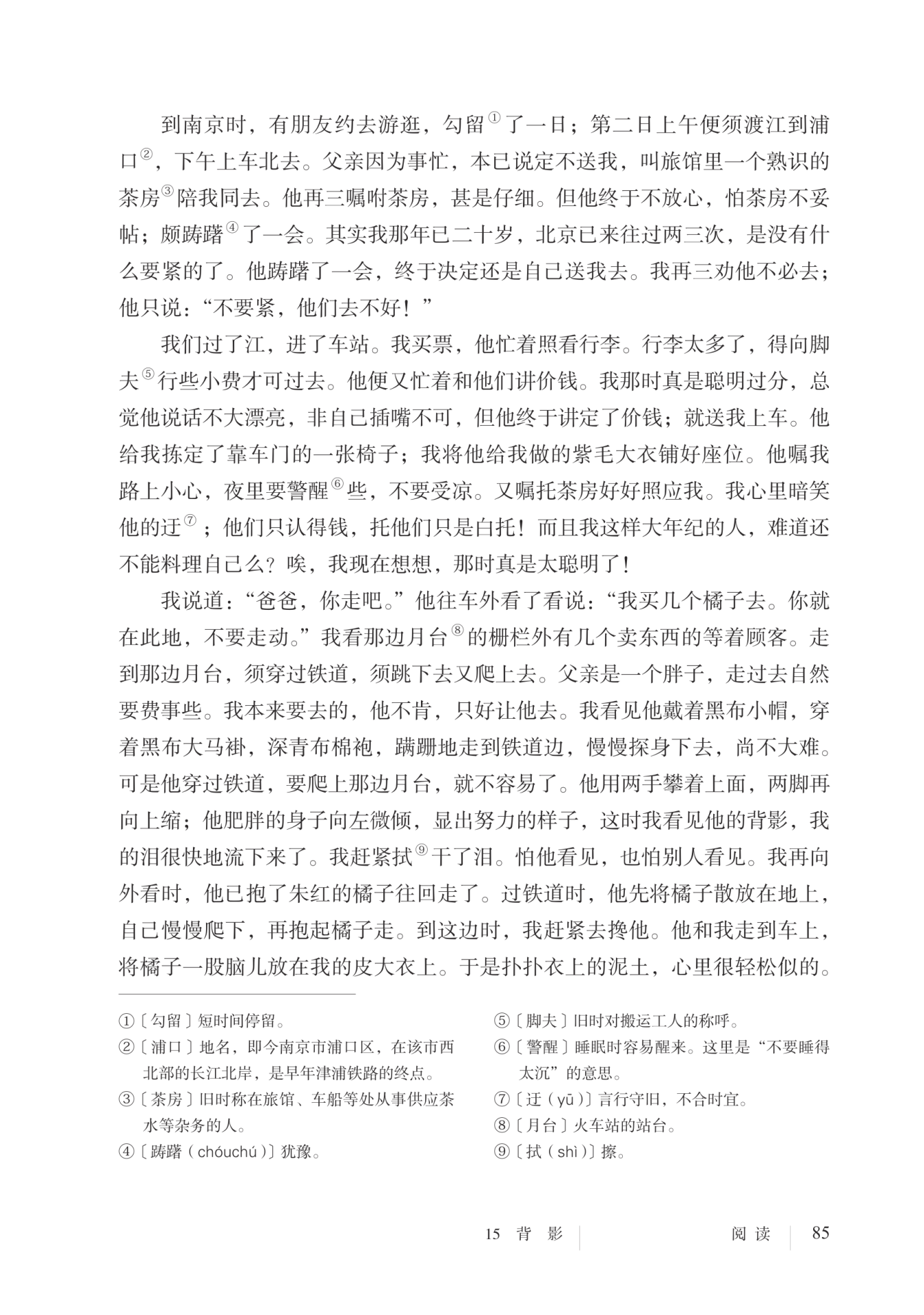 动作描写,“走、探、穿、爬、攀、缩、倾”等一系列动词,写出了父亲攀爬月台时的艰难,刻画出一个朴实、平易、慈爱的父亲形象,感人至深。
