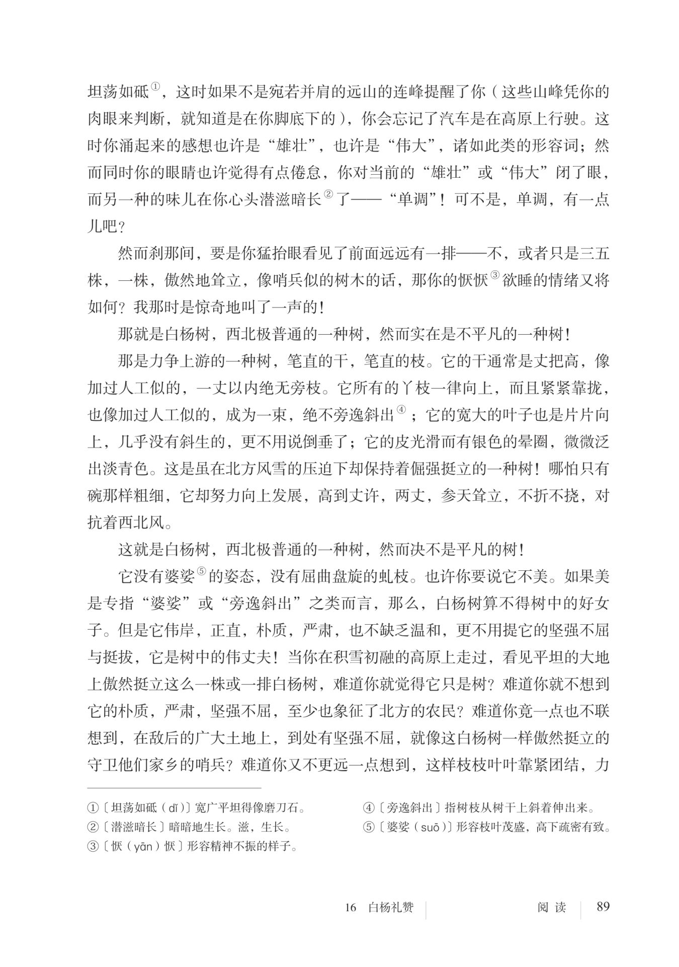 倔强、不折不挠的特点,赞美白杨树的不平凡。