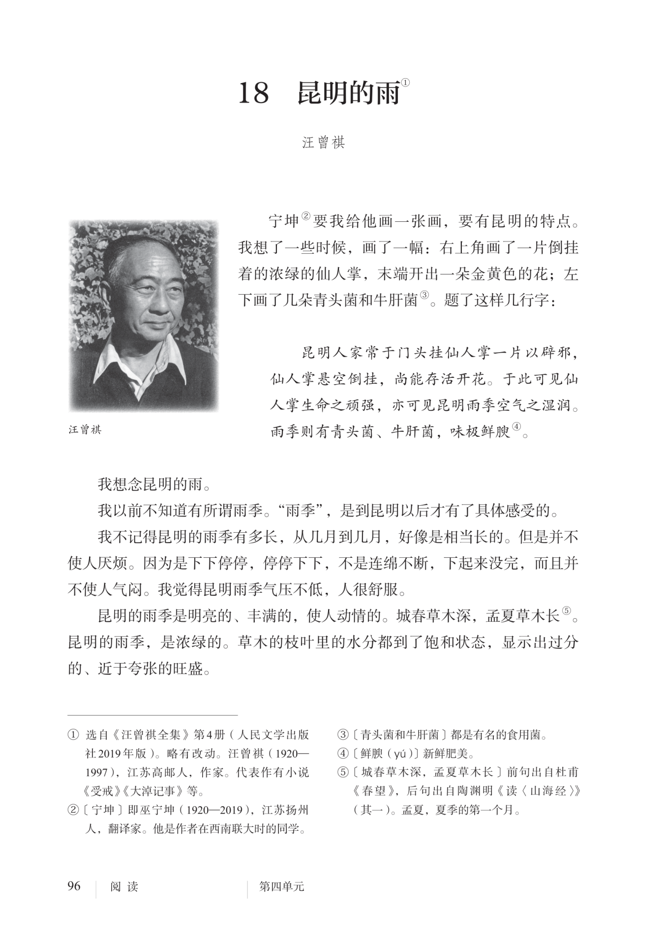 的人和事,充分体现了昆明雨季的自然特点,表达了作者对昆明的雨的喜爱之情、对