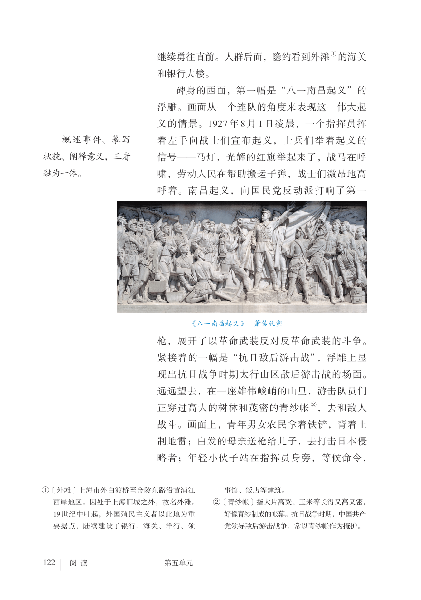 答:介绍“八一南昌起义”浮雕时,