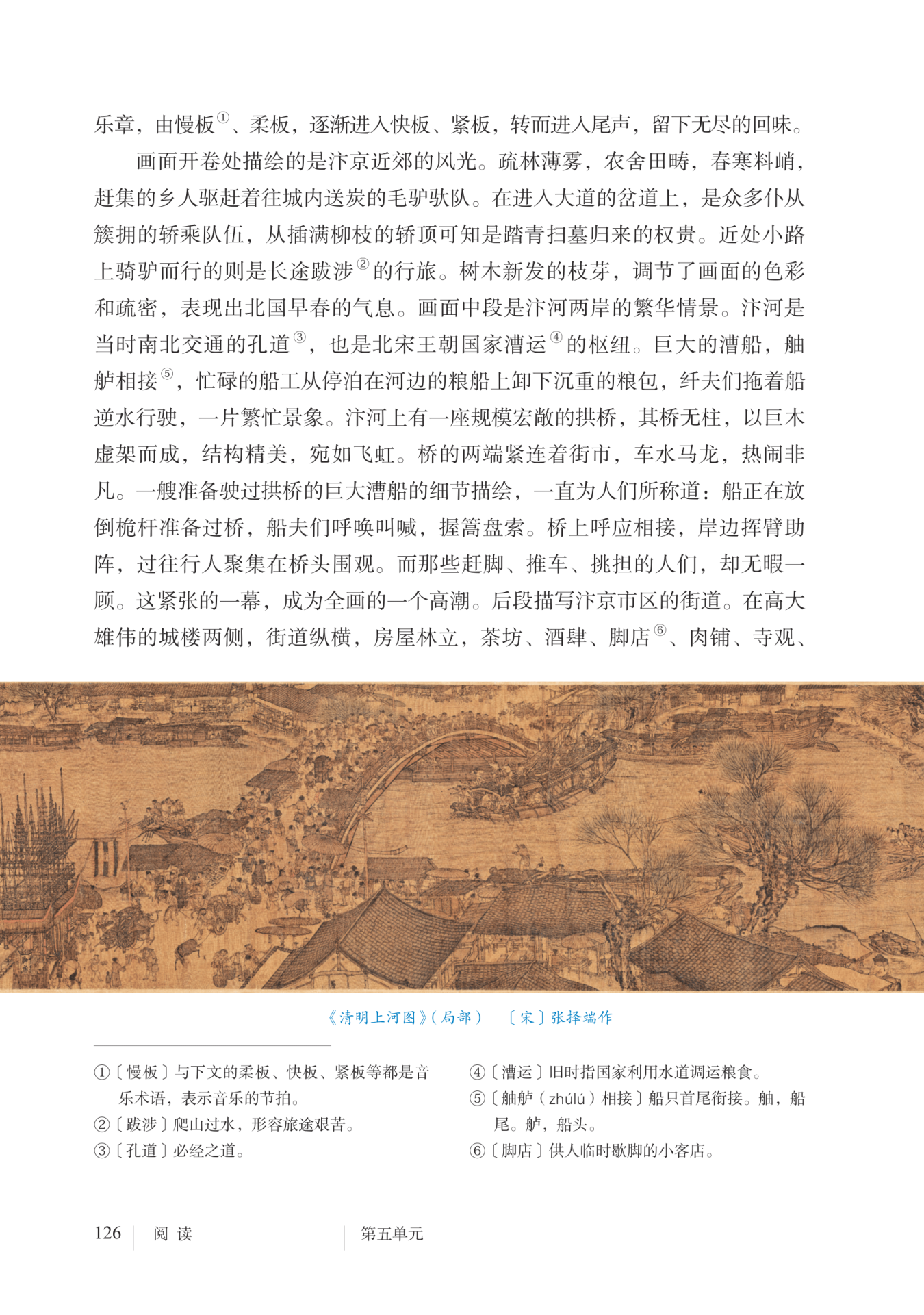摹状貌,形象地描写了画作中准备驶过拱桥的巨大漕船的细节,情景众多,惟妙惟肖。
