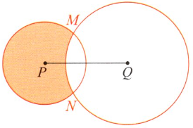 (3)在所画图中,到点$ P $的距离小于或等于$ 1\ \mathrm{cm} $,且到点$ Q $的距离大于或等于$ 1.5\ \mathrm{cm} $的点的集合是如图中阴影部分(包括阴影部分的边界)所示的图形.