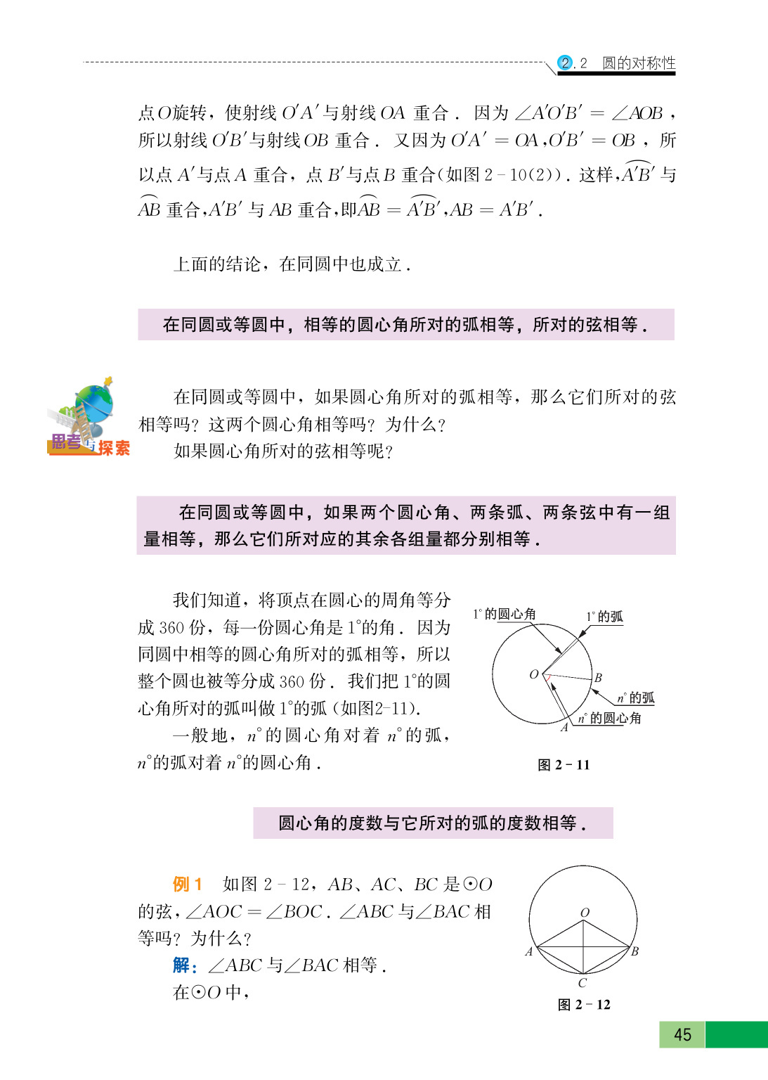 两条弧指的是对应的劣弧和劣弧相等,对应的优弧和优弧相等.
