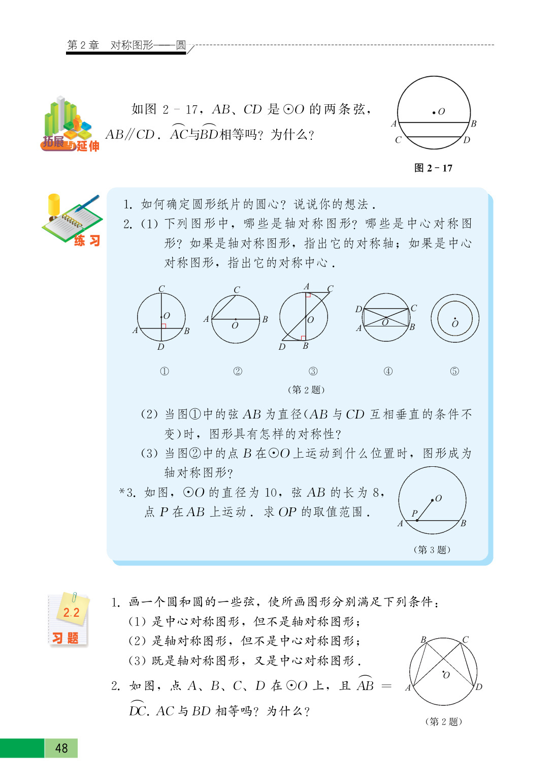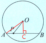 当$P$与$A$(或$B$)重合时,$OP$最大,最大值为半径$5$。