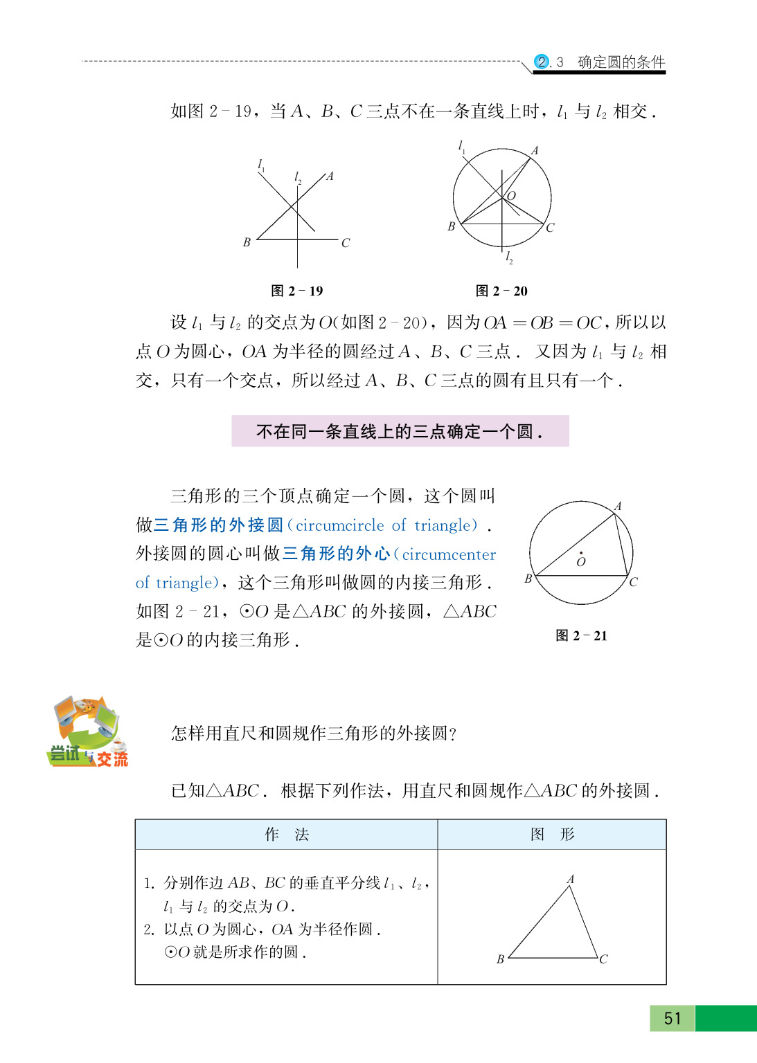 三角形的外接圆有且只有一个.