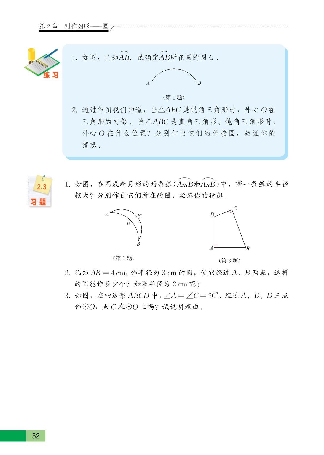 解:经过A、B两点,作半径为3 cm的圆能作2个,