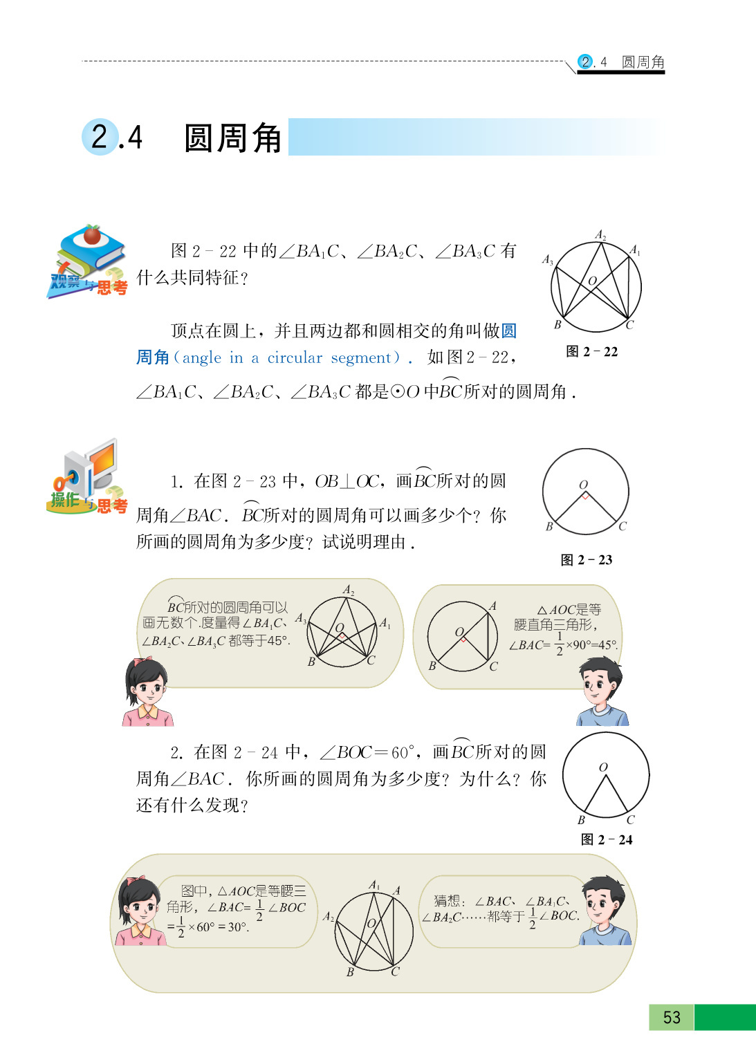 同一条弧所对的圆周角有无数个.