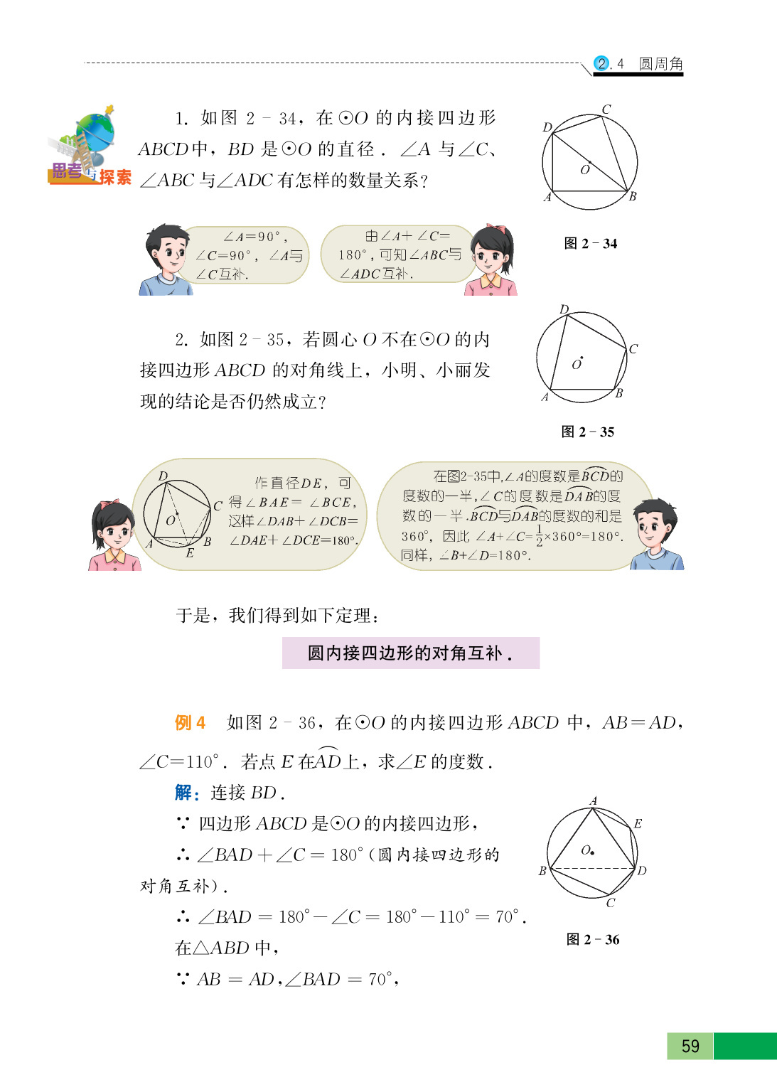 (2)每一个圆有无数个内接四边形,但并不是所有的四边形都存在外接圆,只有对角互补的四边形才存在外接圆.