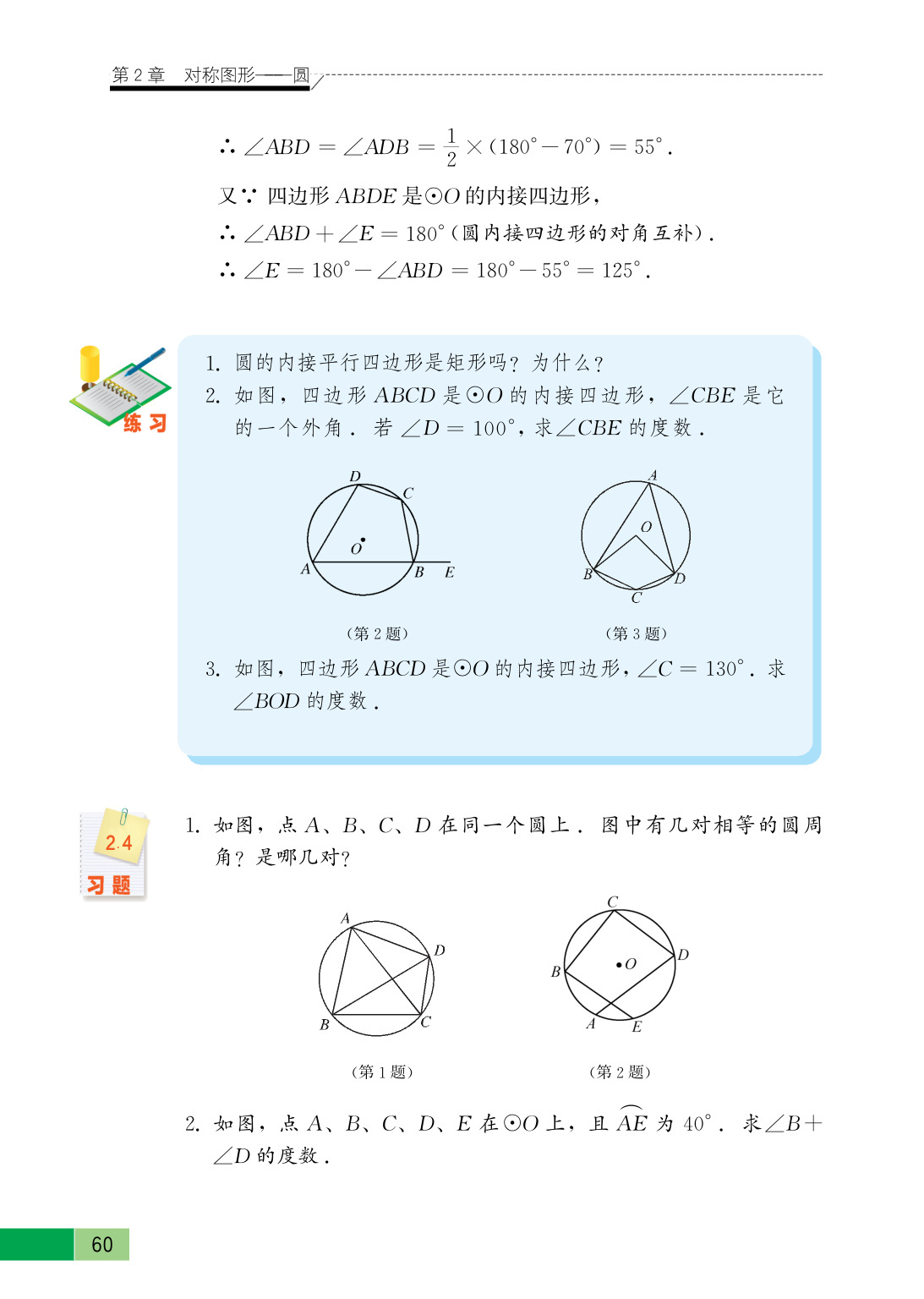 $解:∵四边形ABCD是\odot O的内接四边形$