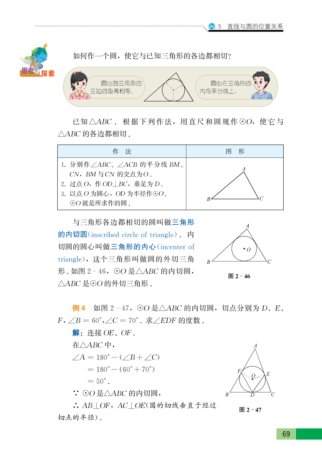 三角形的内心是它三条角平分线的交点.