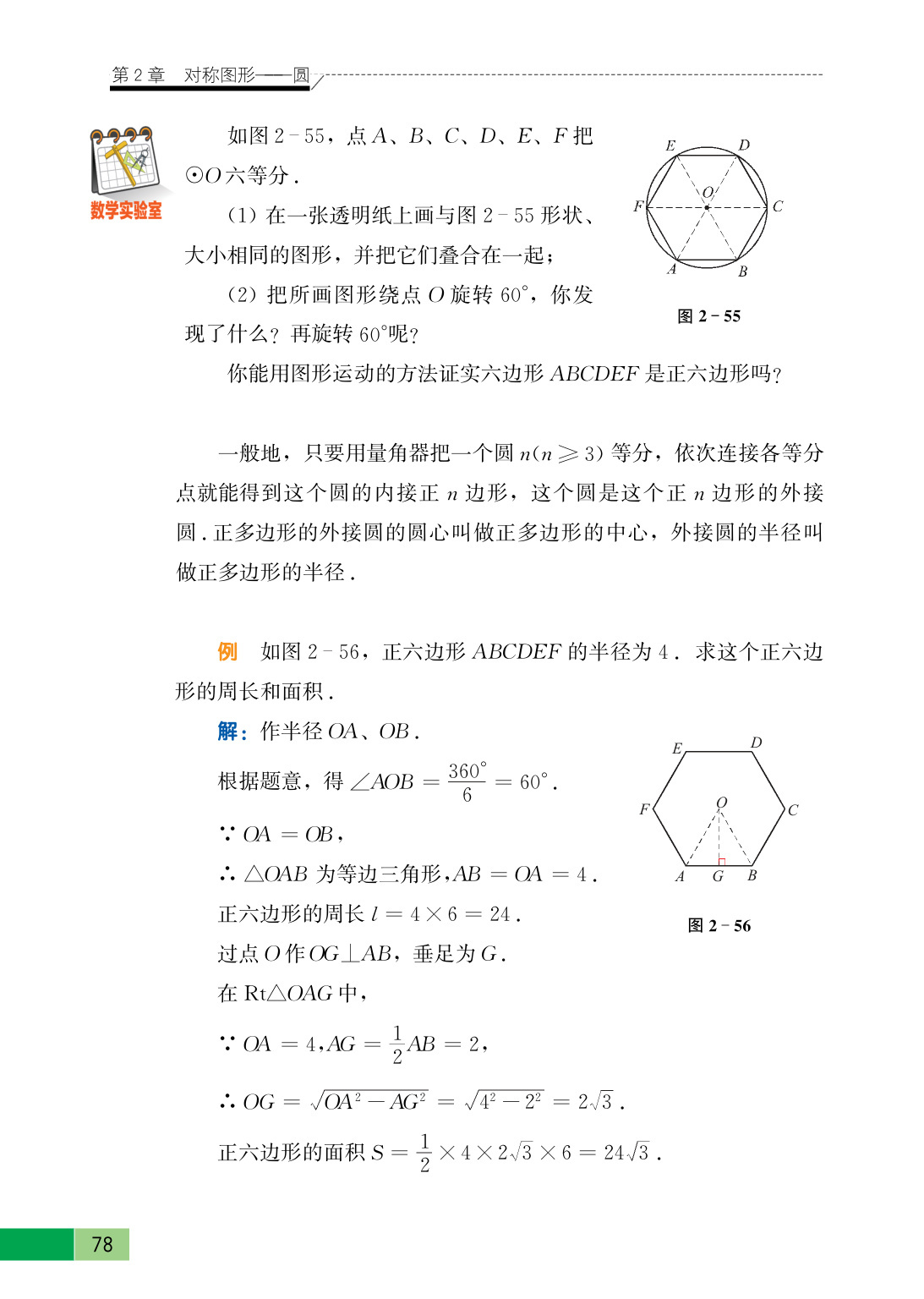 将六边形$ ABCDEF $绕点$ O $每旋转$ 60° $都能与原来的图形重合,说明六边形$ ABCDEF $