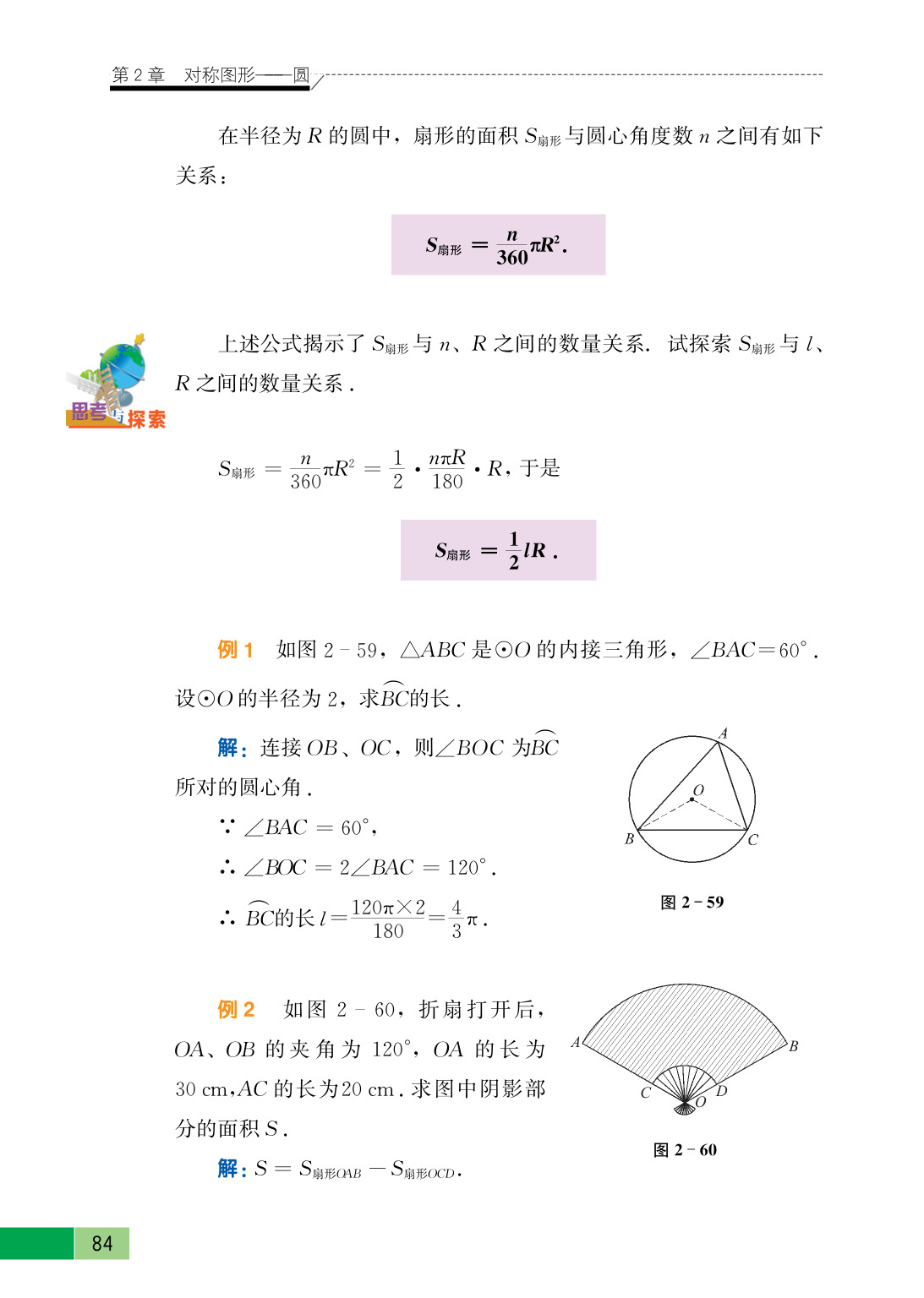 公式$ S_{扇形} = \frac{n}{360}\pi R^2 $,当已