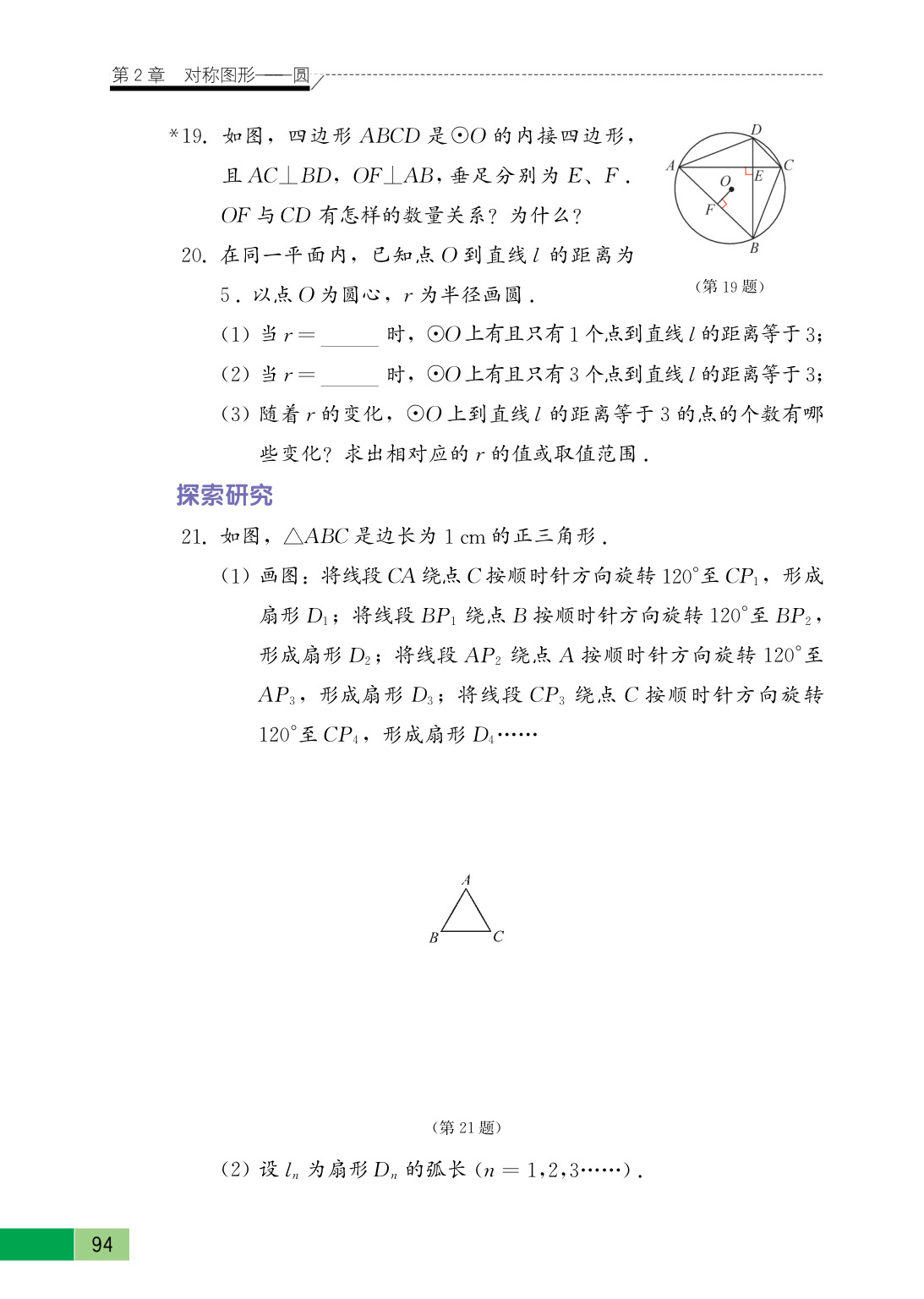 $\odot O上有且只有1个点到直线1的距离等于3;$