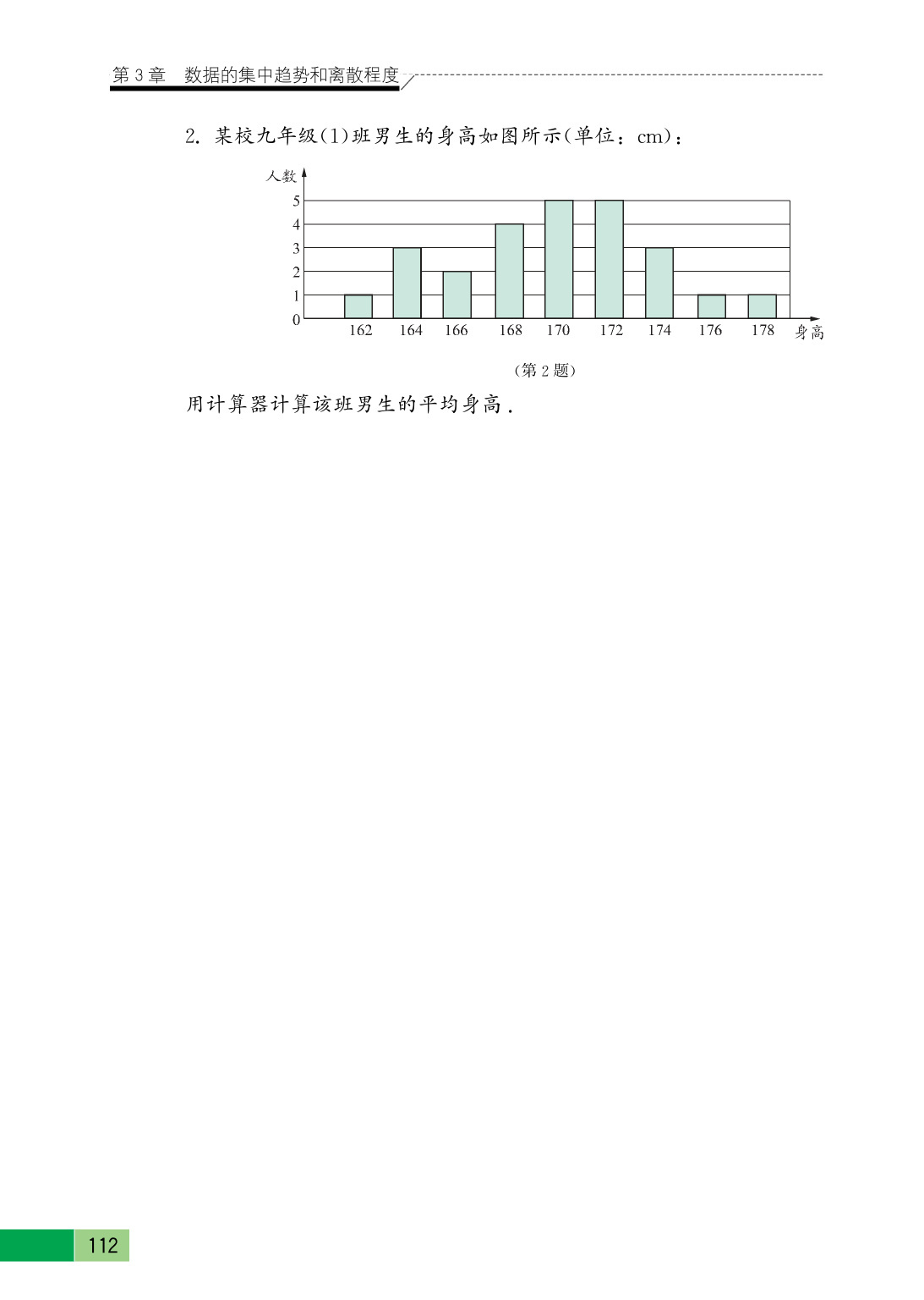 $解:\frac {162+3×164+2×166+4×168+5×170+5×172+3×174+176+178}{1+3+2+4+5+5+3+1+1}=169.76(\ \mathrm {cm})$
