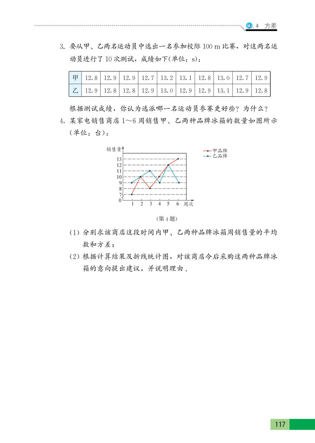 $ 解:应该选乙参赛更好一些,理由如下:$