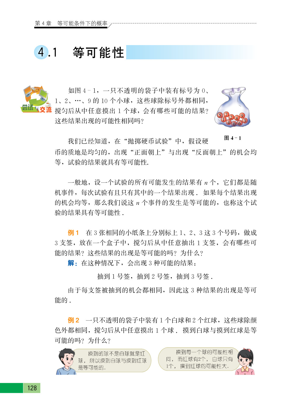 会出现摸出0~9号球,共10种可能的结果,这些结果出现的可能性相同.