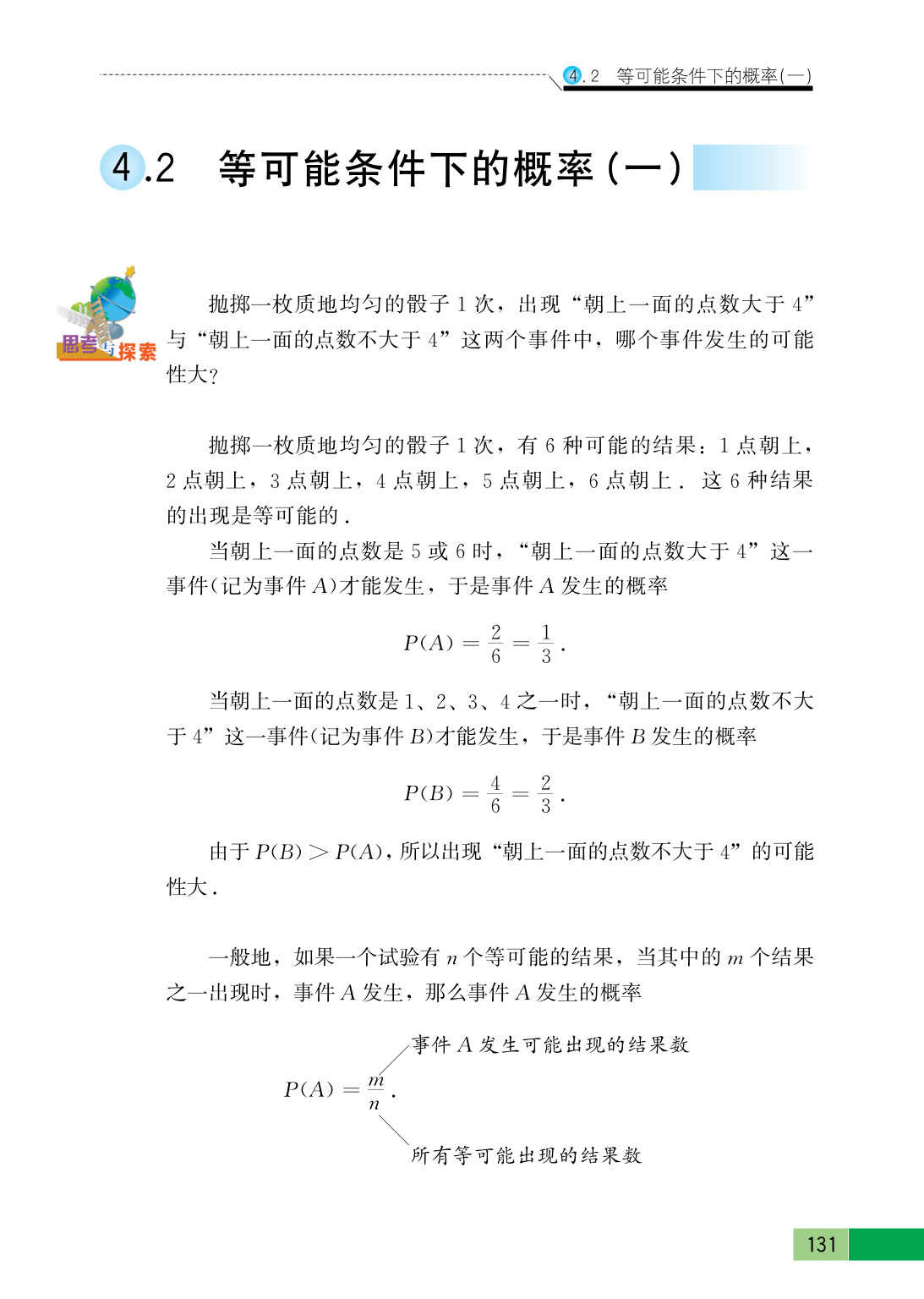 (1)事件发生的可能性越大,它的概率越接近于1;反之,事件发生的可能