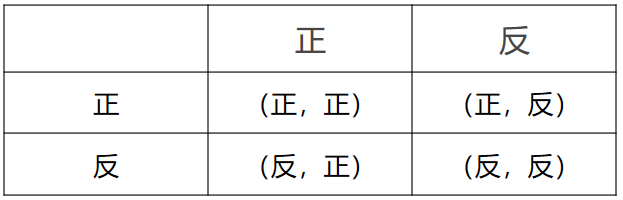 设第一枚硬币的结果为行,第二枚硬币的结果为列,列表如下: