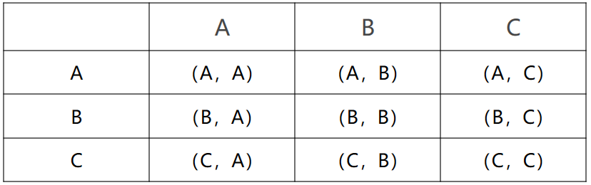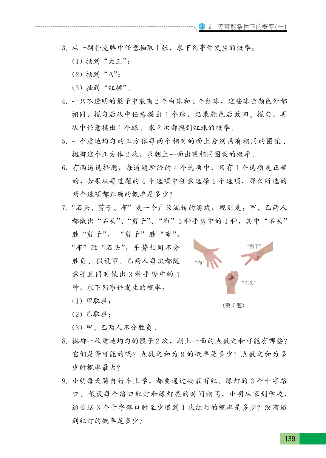 $(3)甲、乙不分胜负的情况为(石头,石头),(剪子,剪子),(布,布),$