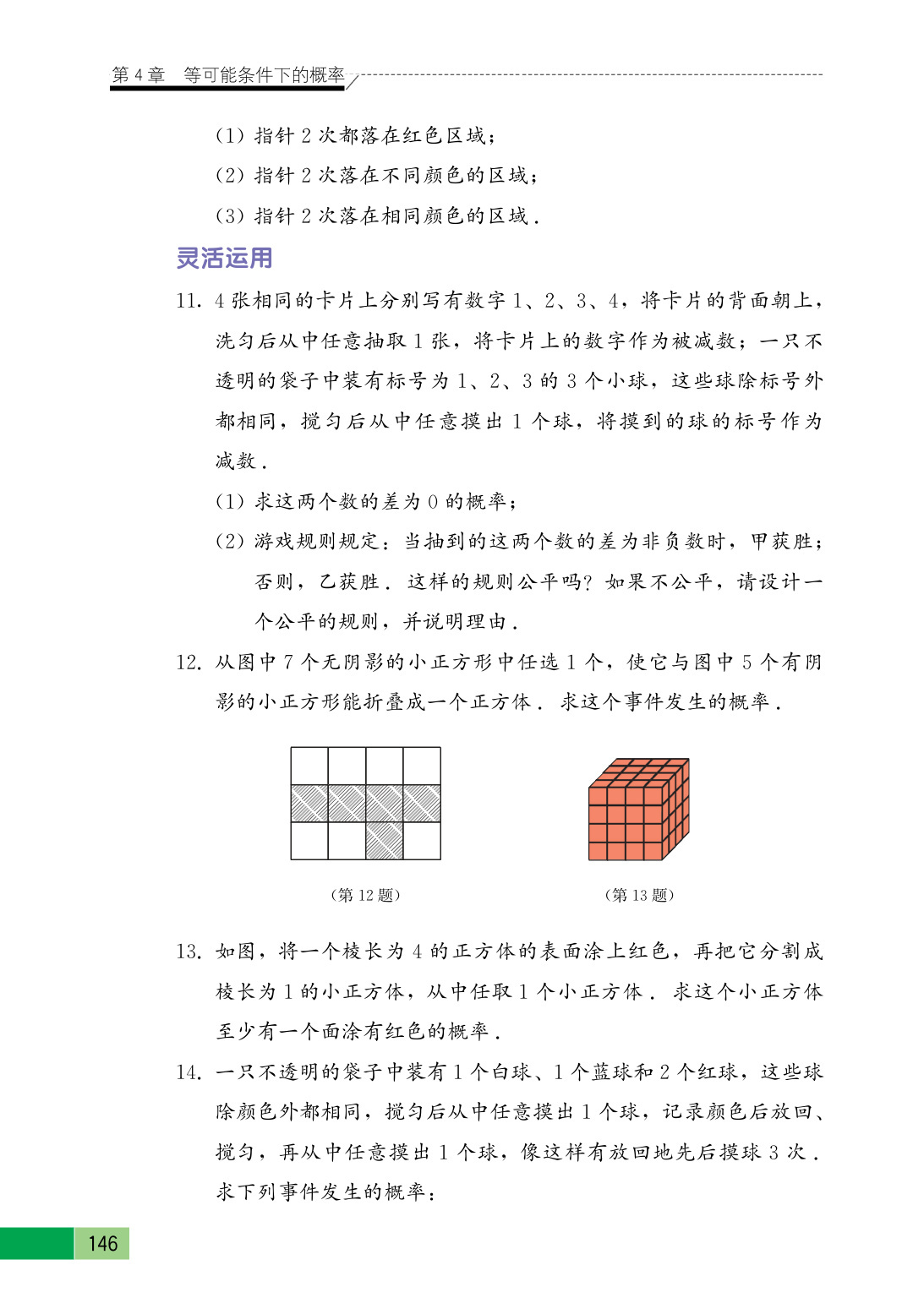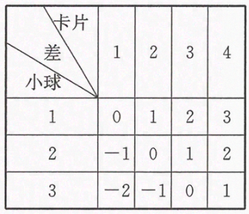 (1)共有12种等可能的结果,其中两个数的差为0的情况占3种