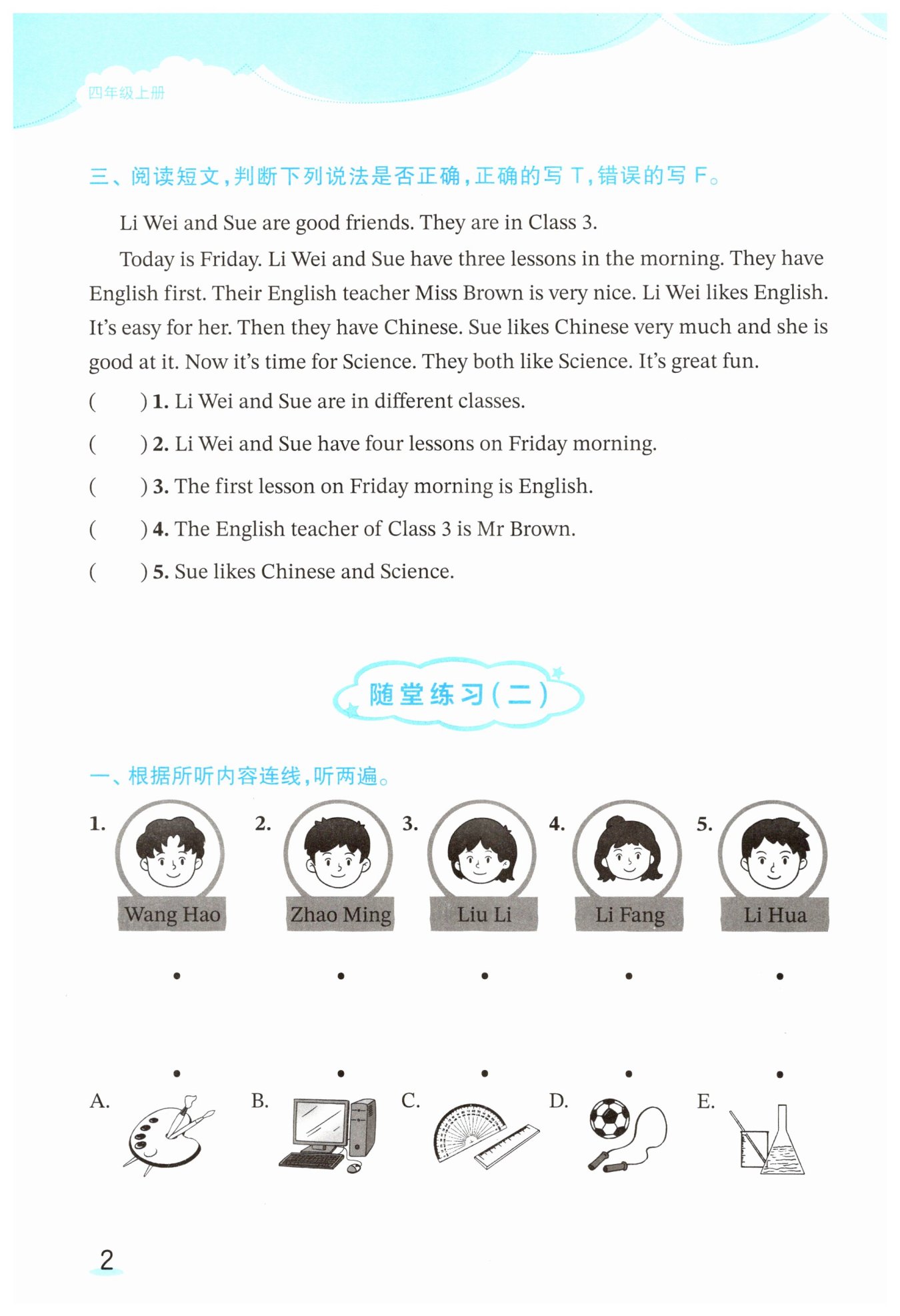 ( )2. 李伟和苏星期五上午有四节课。