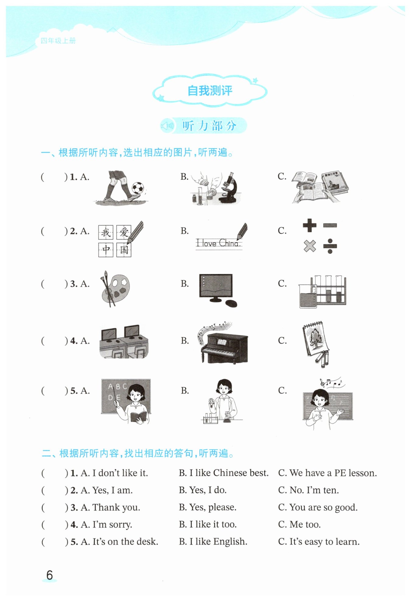 二、根据所听内容,找出相应的答句,听两遍。
