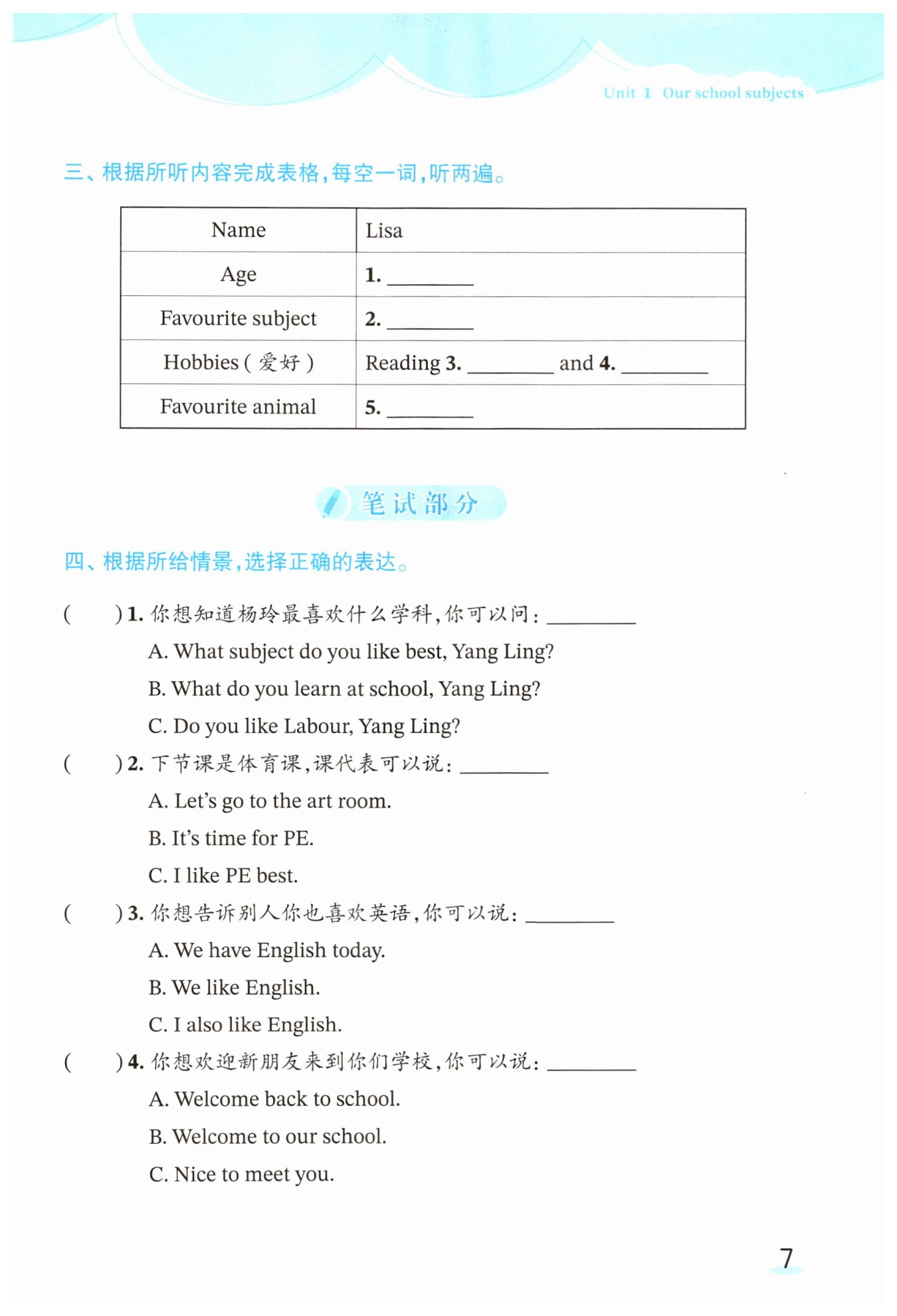 ( )1. 你想知道杨玲最喜欢什么学科,你可以问:______