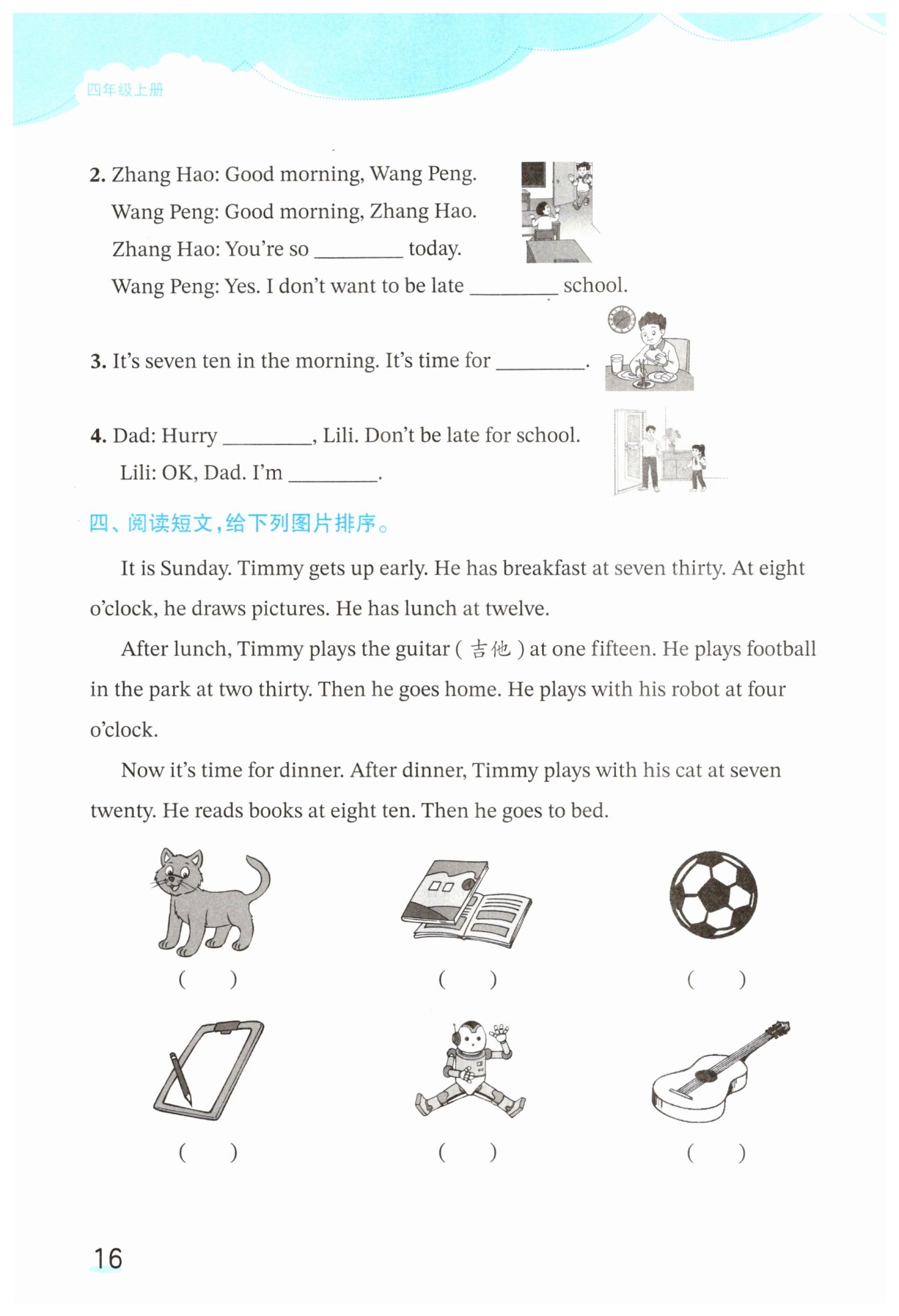 三、根据图片和上下文提示补全对话或句子,每空一词。