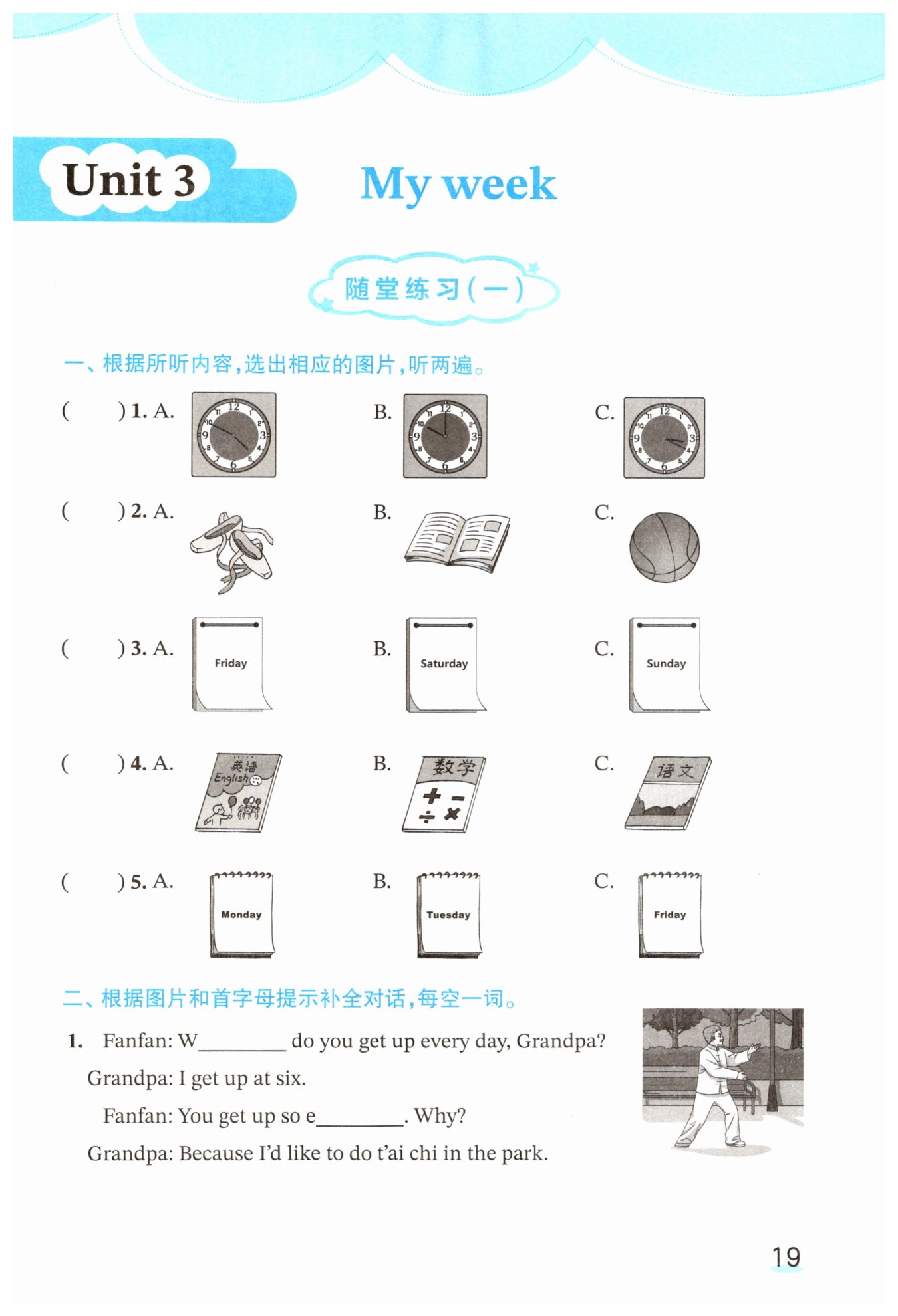 爷爷:不,我不是。我从周一到______打太极。周日,我和我的朋友们去爬山。运动对我们有好处。
