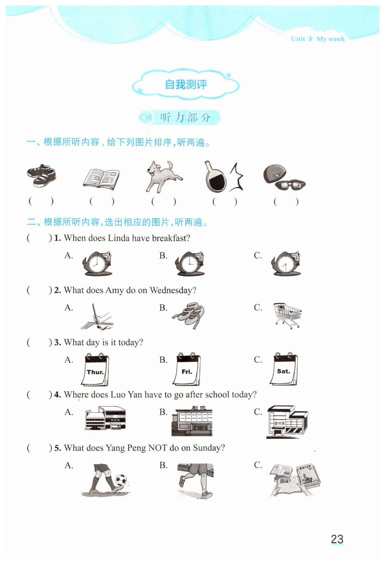 二、根据所听内容,选出相应的图片,听两遍。