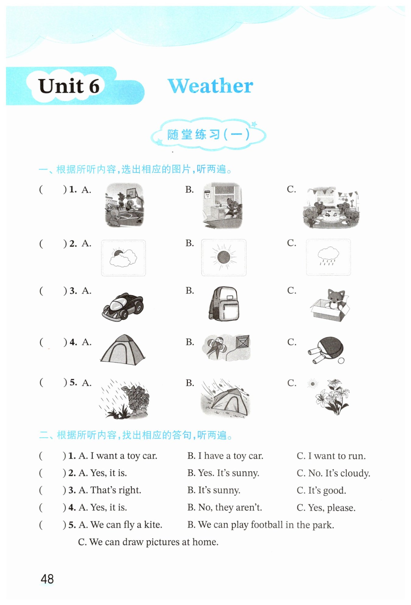 ( )2. A. 是的,它是。 B. 是的。天气晴朗。 C. 不。天气多云。