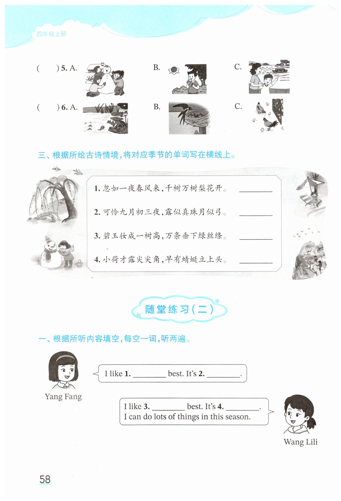 卢鹏:现在是5. ______了。它是我最喜欢的季节。我可以去6. ______。