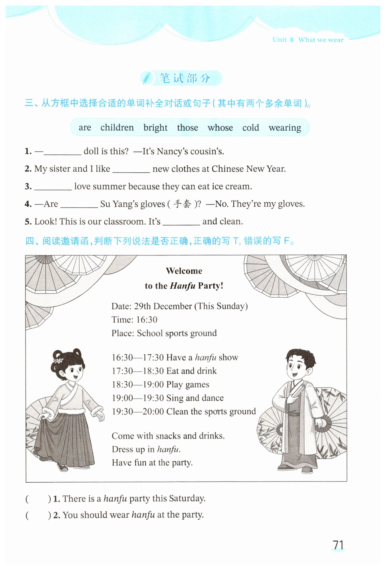 ( )1. 本周六有一场汉服派对。