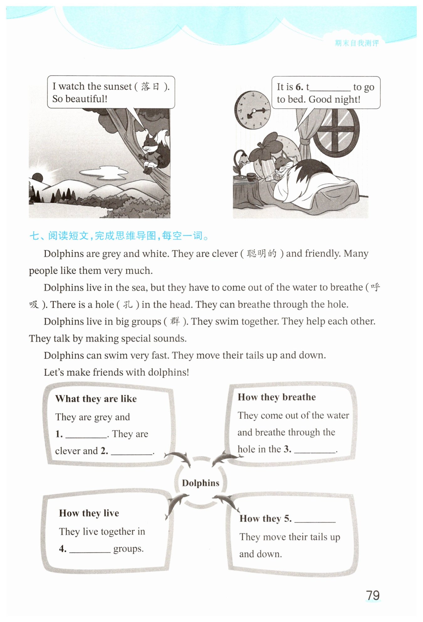 七、阅读短文,完成思维导图,每空一词。