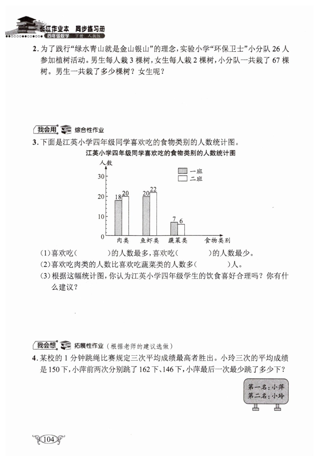 $答:男生一共栽了45棵树,女生一共栽了22棵$
