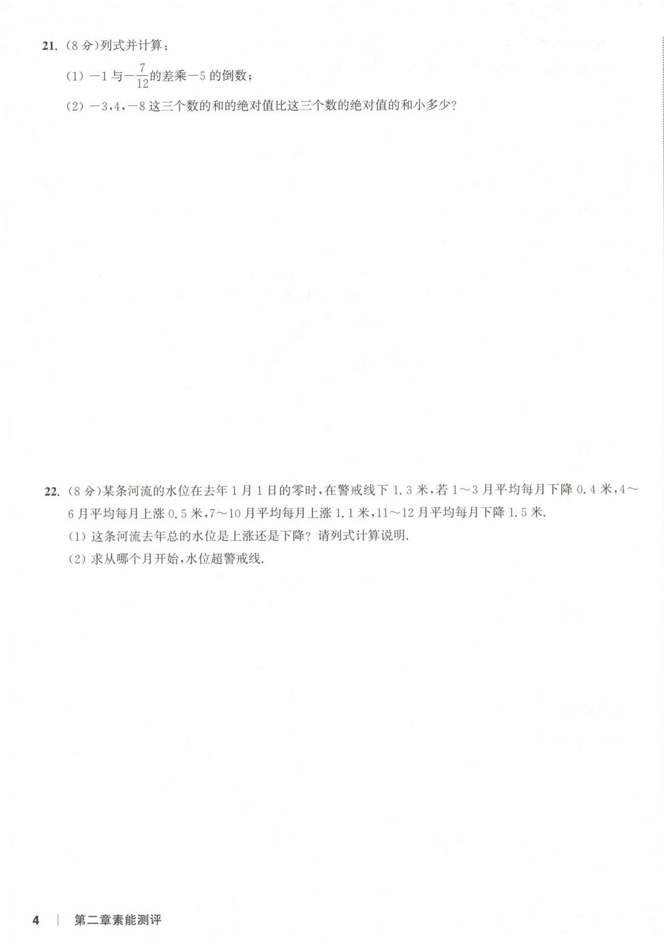 $(2)设警戒水位为0米,3月时水位为-1.3-0.4×3=-2.5(米),$