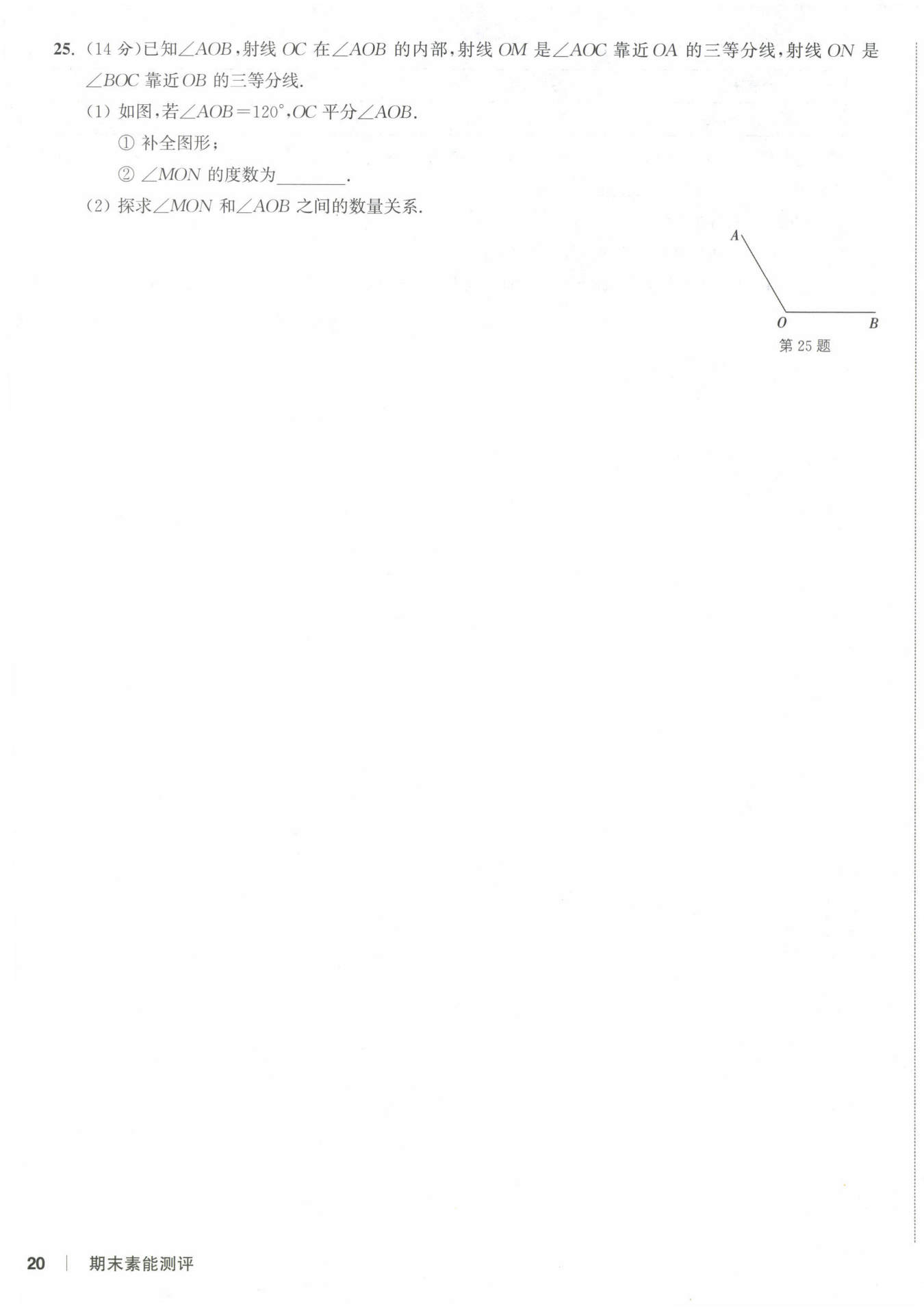 $解:(2)因为射线OM是∠AOC靠近OA的三等分线,射线ON是∠BOC靠近OB的三等分线,$