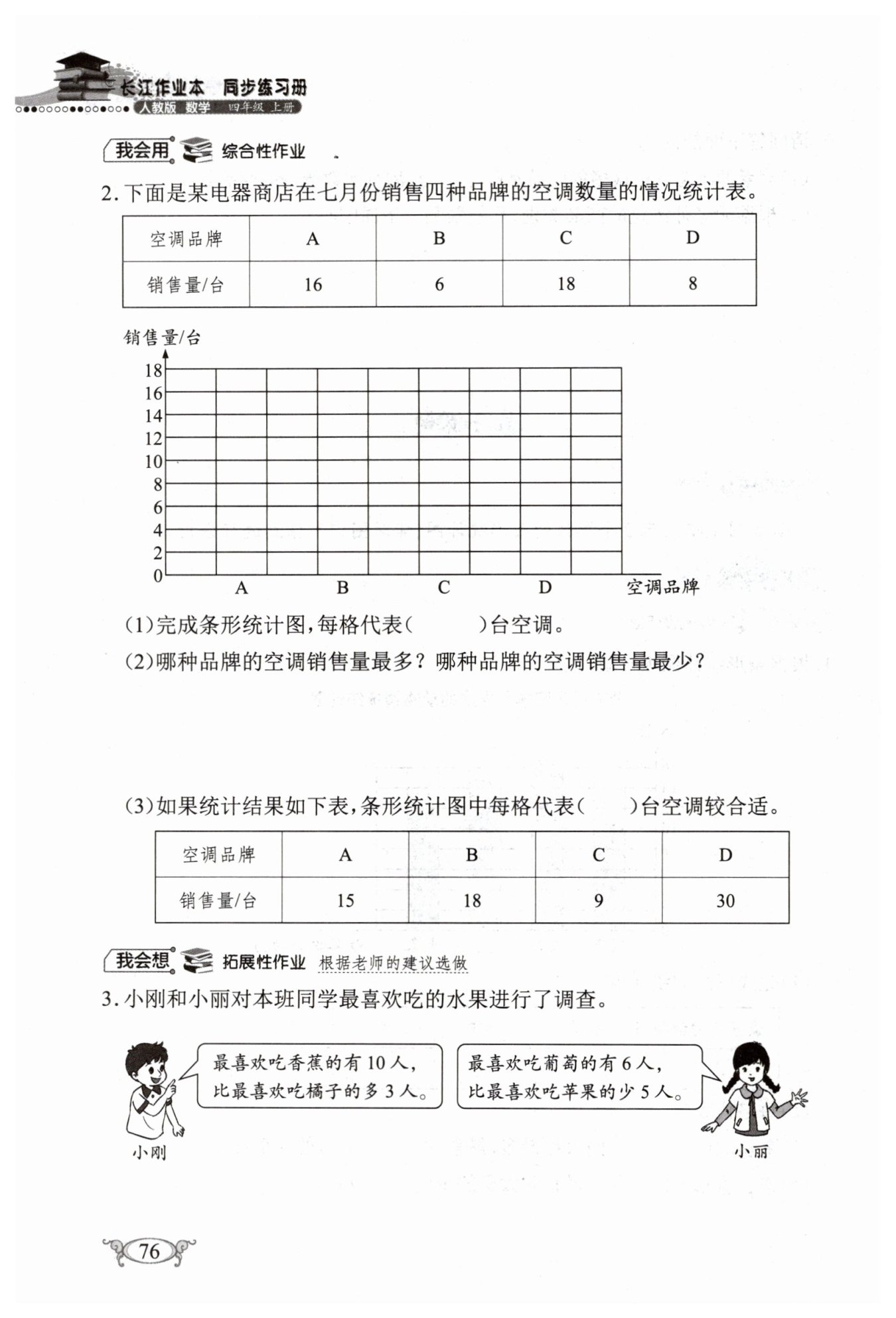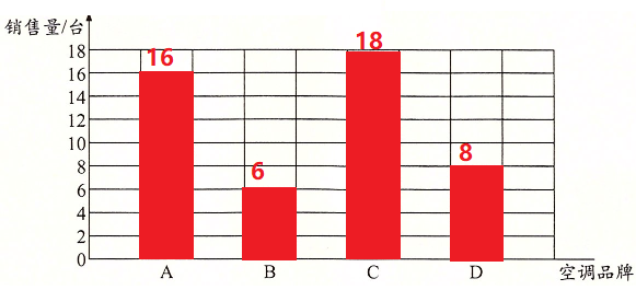 答:C品牌的空调销量最多,B品牌的销量最少。